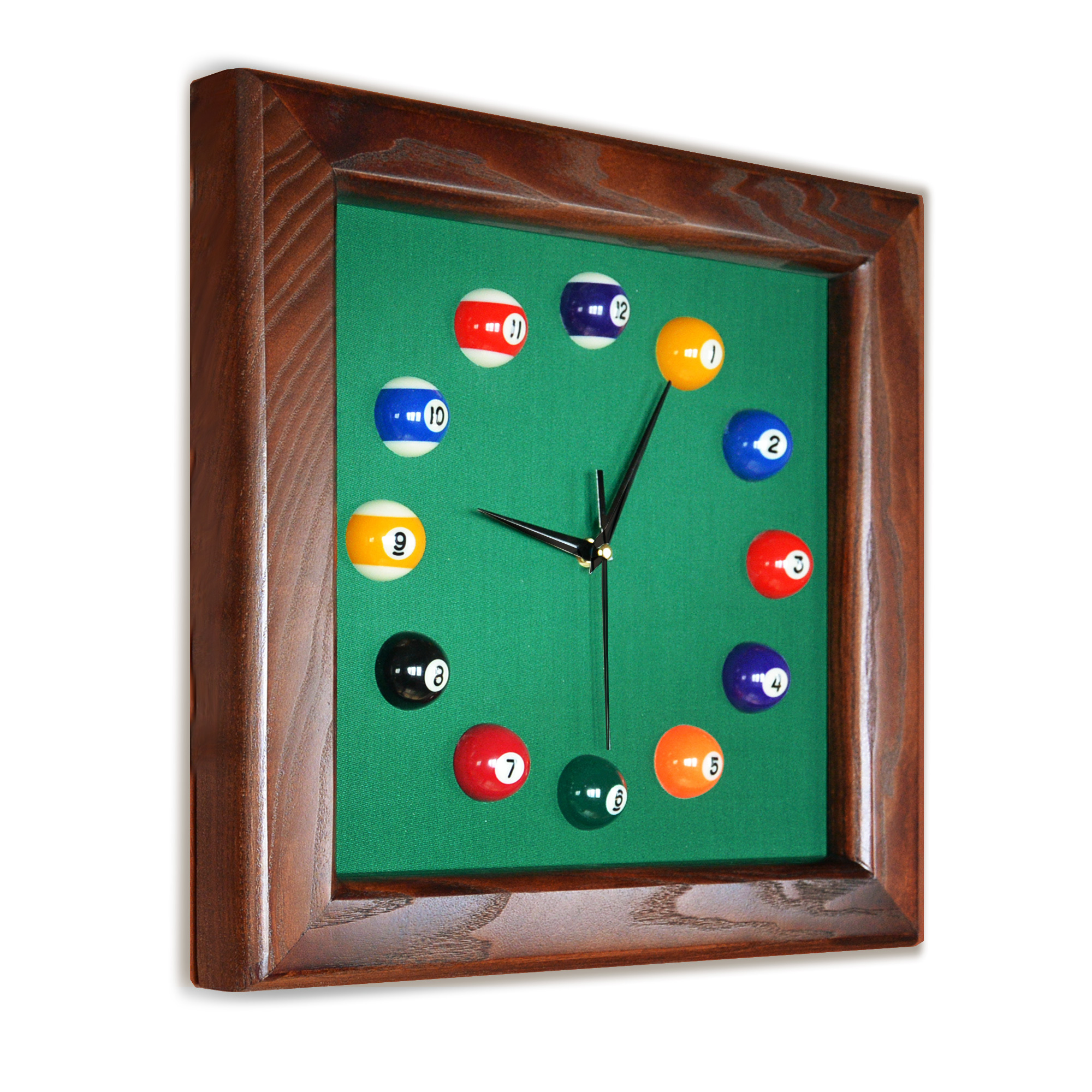 Бильярдные часы - это не только украшение интерьера бильярдной комнаты, элемент декора, но функционально-нужная вещь. Часыnbsp;nbsp;станут отличным тематическим подарком, полезным знаком внимания человеку, который так или иначе интересуется игрой в бильярд. Стрелки часового механизма могут незначительно отличаться от представленных на фотографии