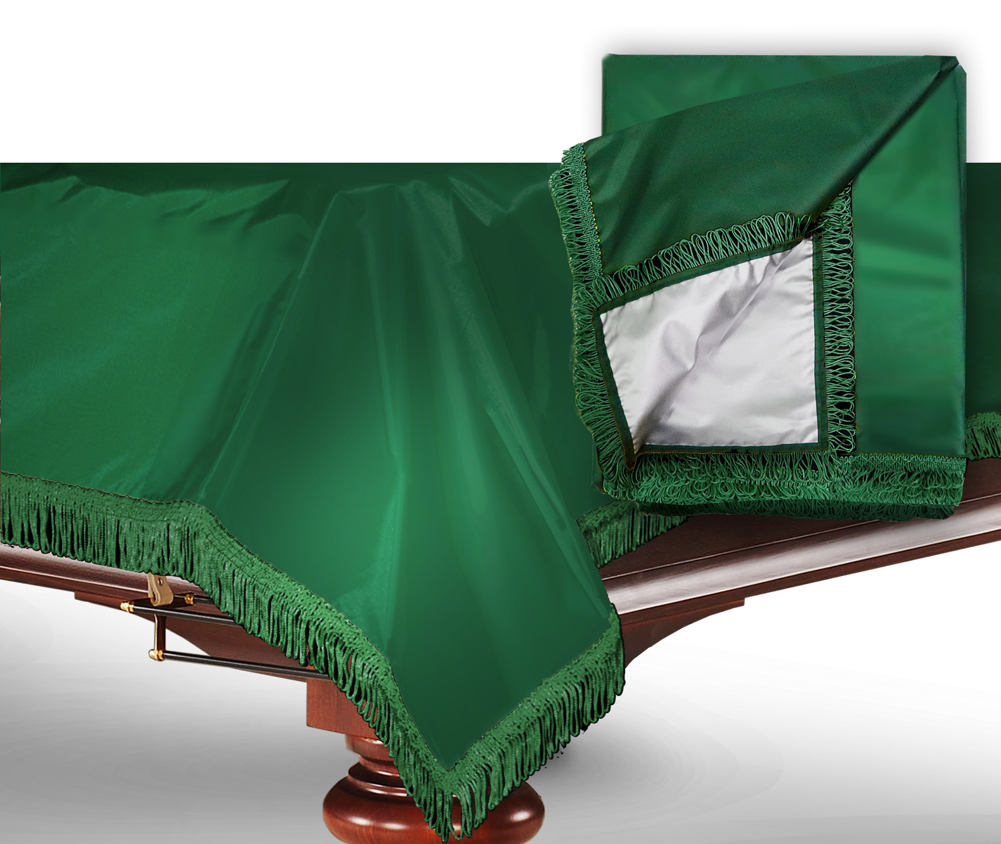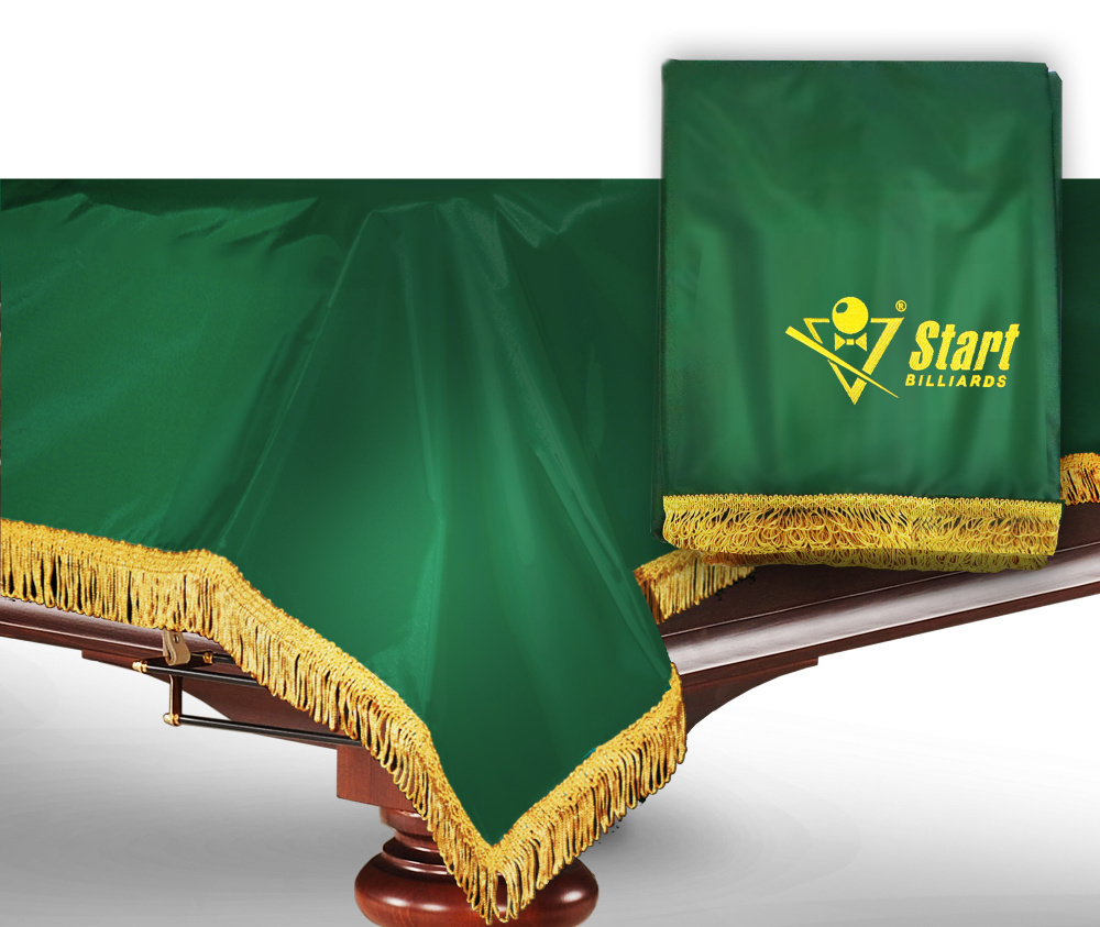 Чехол с влагостойкой пропиткой, обрамленный бахромой, надежно предохраняет бильярдный стол от внешних воздействий.. Стильный декор, практичный материал украшенный золотистой бахромой - замечательно впишется в интерьер бильярдной комнаты, ресторана или клуба. Пропитка придает ткани водоотталкивающие свойства, делает ее более плотной и гладкой. Чехол выкроен с таким расчетом, чтобы спускающаяся с поверхности стола ткань надежно закрывала и борта, и лузы, и часть опоры. Предназначен для защиты сукна и стола от неблагоприятных внешних воздействий. В первую очередь, от пыли, которая со временем впитывается в сукно, ухудшая его игровые свойства.