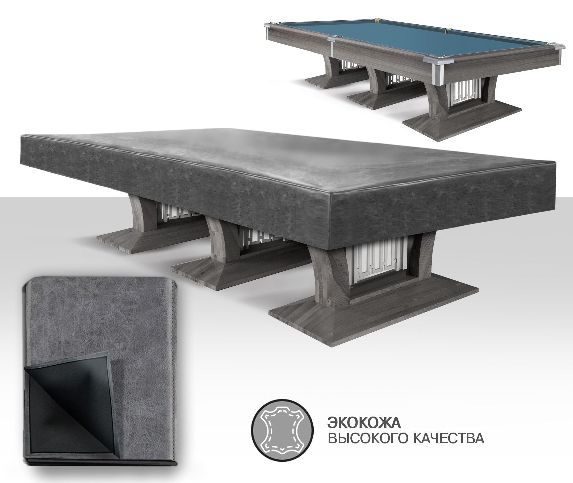 Чехол для бильярдных столов из плотной экокожи высокого качества обеспечивает надежную защиту от пыли, влаги, солнечного света и случайных царапин в перерывах между играми. Благодаря этому чехлу сукно не выгорает на солнце, и необходимость частой чистки поверхности стола от пыли значительно уменьшается. Это позволяет сукну сохранять свои свойства на более длительный срок. Чехол представляет собой идеальное сочетание стиля и функциональности. Специально разработанный для бильярдных столов High-tech и High-style чехол обеспечивает идеальную защиту поверхности, надежно закрывая борта и лузы. Также одним из главных достоинств данного чехла является его стильный и элегантный дизайн. Он способен подчеркнуть изысканный вкус владельца, добавляя нотку утонченности в обстановку. Чехлы представлены в двух классических цветах: бежевый и серый. Это универсальные цвета, которые легко впишутся в любой стиль интерьера. Такой чехол станет гармоничным дополнением к интерьеру любой бильярдной комнаты, создавая атмосферу уюта и роскоши. Материал чехла не требует особого ухода. Достаточно периодически аккуратно очищать от пыли влажной тканью, что делает его использование еще более удобным. Чехол станет незаменимым аксессуаром для любого владельца бильярдного стола, обеспечивая не только защиту, но и добавляя эстетическую привлекательность вашему игровому пространству.