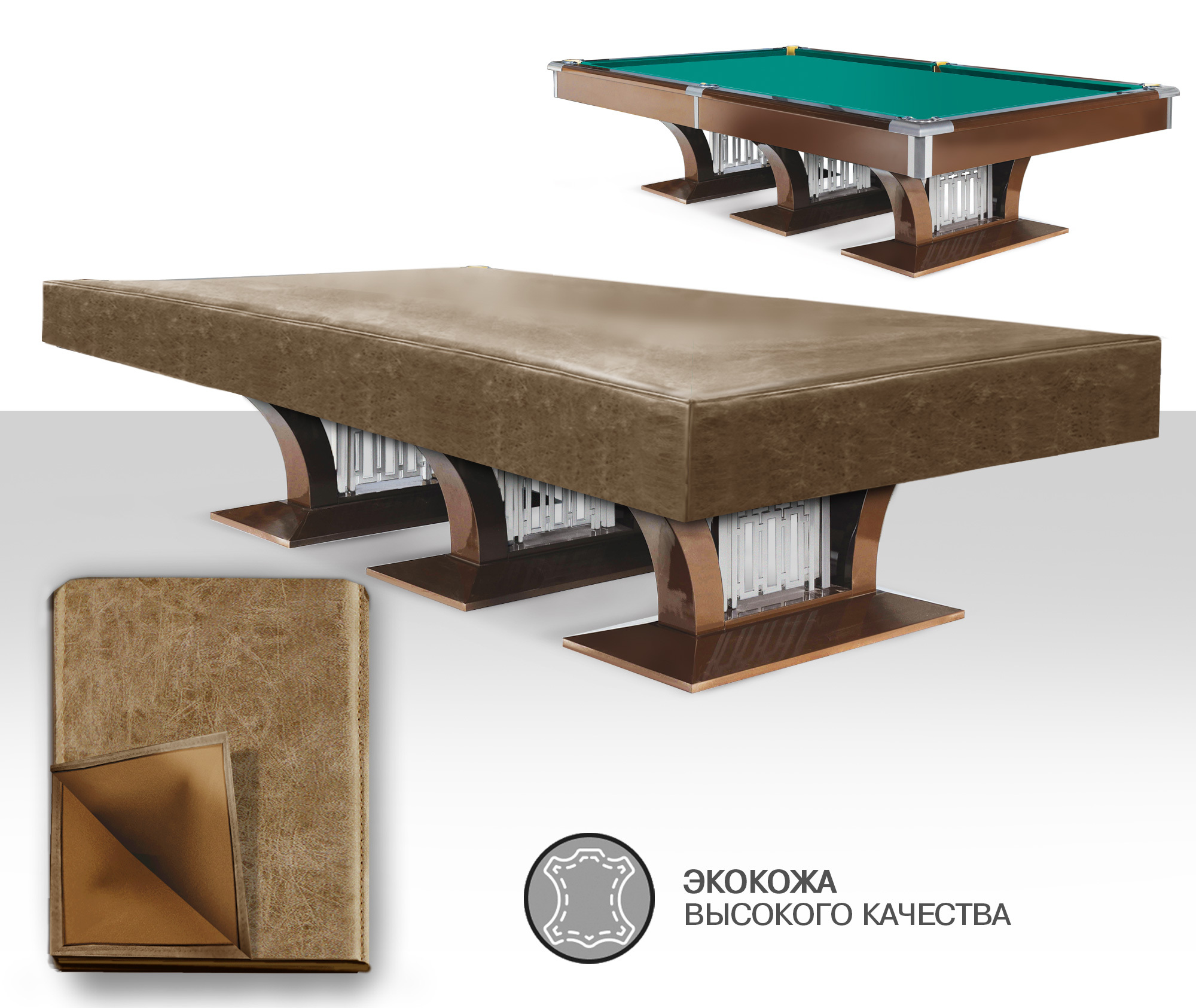 Чехол для бильярдных столов из плотной экокожи высокого качества обеспечивает надежную защиту от пыли, влаги, солнечного света и случайных царапин в перерывах между играми. Благодаря этому чехлу сукно не выгорает на солнце, и необходимость частой чистки поверхности стола от пыли значительно уменьшается. Это позволяет сукну сохранять свои свойства на более длительный срок. Чехол представляет собой идеальное сочетание стиля и функциональности. Специально разработанный для бильярдных столов High-tech и High-style чехол обеспечивает идеальную защиту поверхности, надежно закрывая борта и лузы. Также одним из главных достоинств данного чехла является его стильный и элегантный дизайн. Он способен подчеркнуть изысканный вкус владельца, добавляя нотку утонченности в обстановку. Чехлы представлены в двух классических цветах: бежевый и серый. Это универсальные цвета, которые легко впишутся в любой стиль интерьера. Такой чехол станет гармоничным дополнением к интерьеру любой бильярдной комнаты, создавая атмосферу уюта и роскоши. Материал чехла не требует особого ухода. Достаточно периодически аккуратно очищать от пыли влажной тканью, что делает его использование еще более удобным. Чехол станет незаменимым аксессуаром для любого владельца бильярдного стола, обеспечивая не только защиту, но и добавляя эстетическую привлекательность вашему игровому пространству.