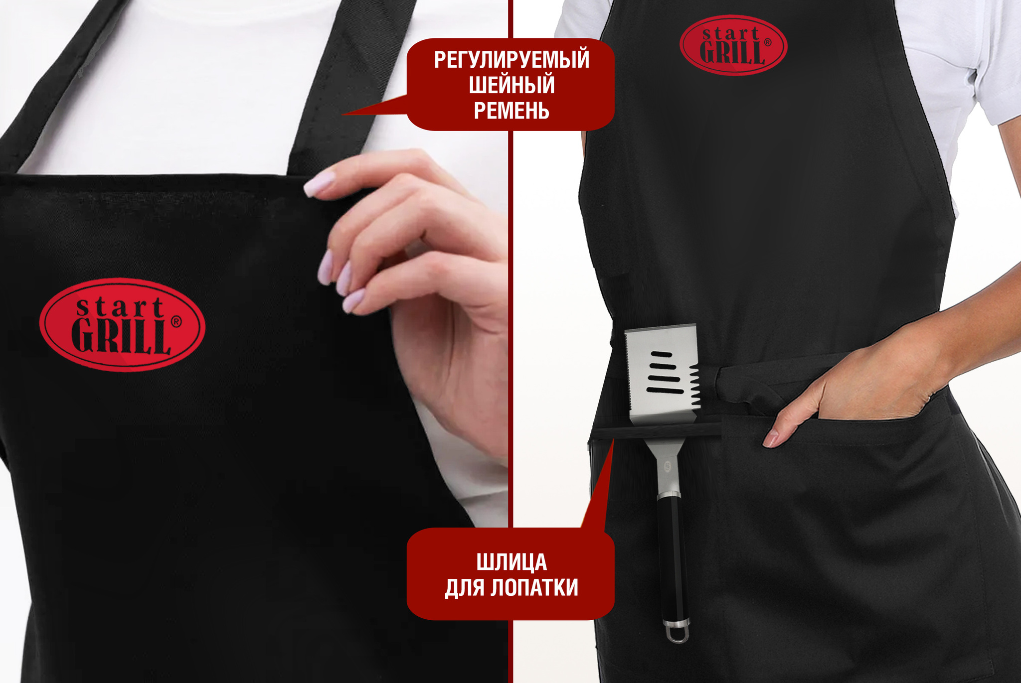 Универсальный фартук Start Grill станет незаменимым помощником на кухне и свежем воздухе! Плотный материал фартука позволит сохранить вашу одежду в чистоте даже в самые жаркие моменты готовки. Универсальный размер и шейный ремень позволят адаптировать фартук под любой рост и комплекцию, обеспечивая удобную посадкуnbsp;nbsp;и свободу движений. Фартук оснащен двумя вместительными карманами для хранения необходимых аксессуаров. Удобная шлица для лопатки обеспечивает легкий доступ к инструменту во время готовки. Фартук Start Grill сочетает в себе функциональность и стиль, делая процесс приготовления пищи еще более комфортным!