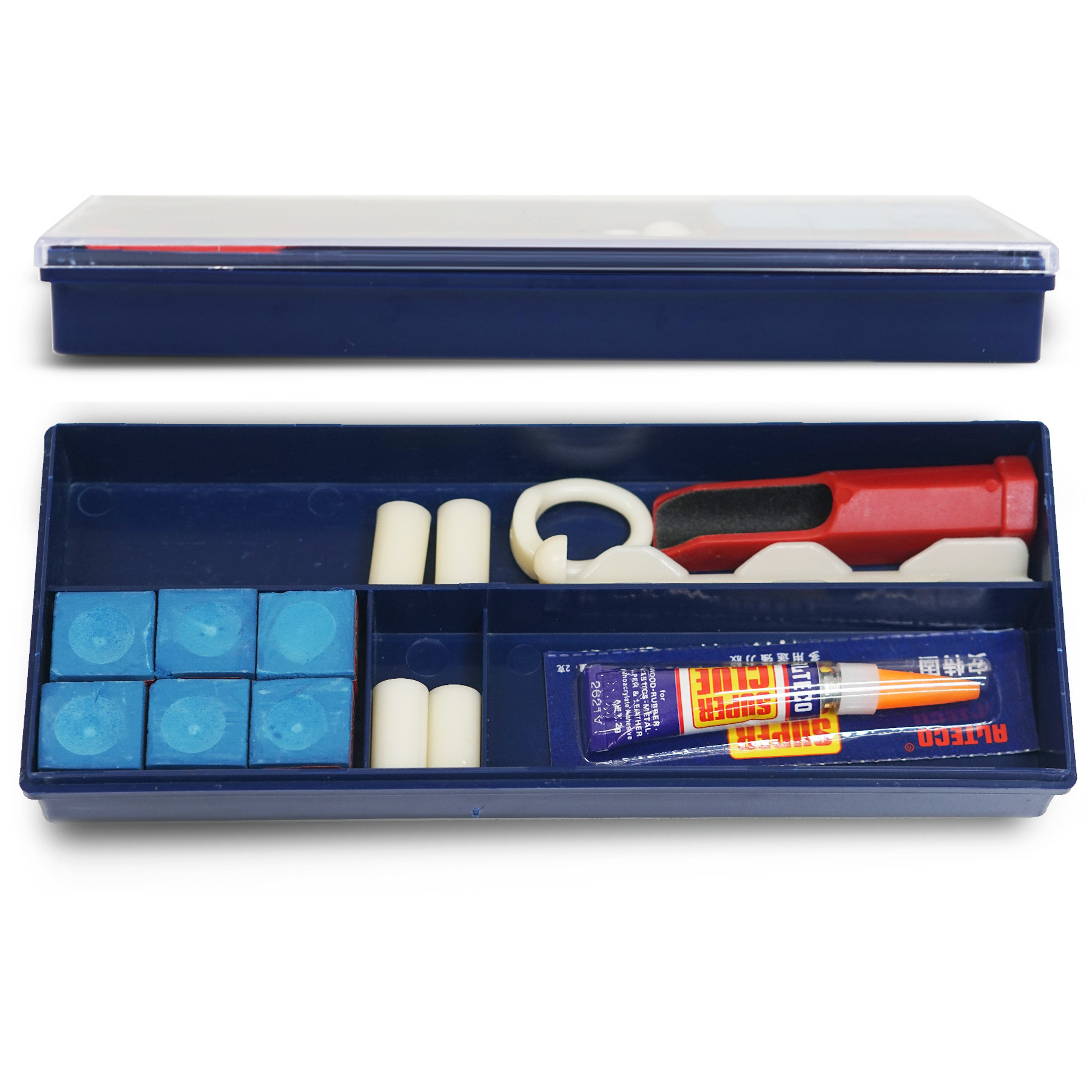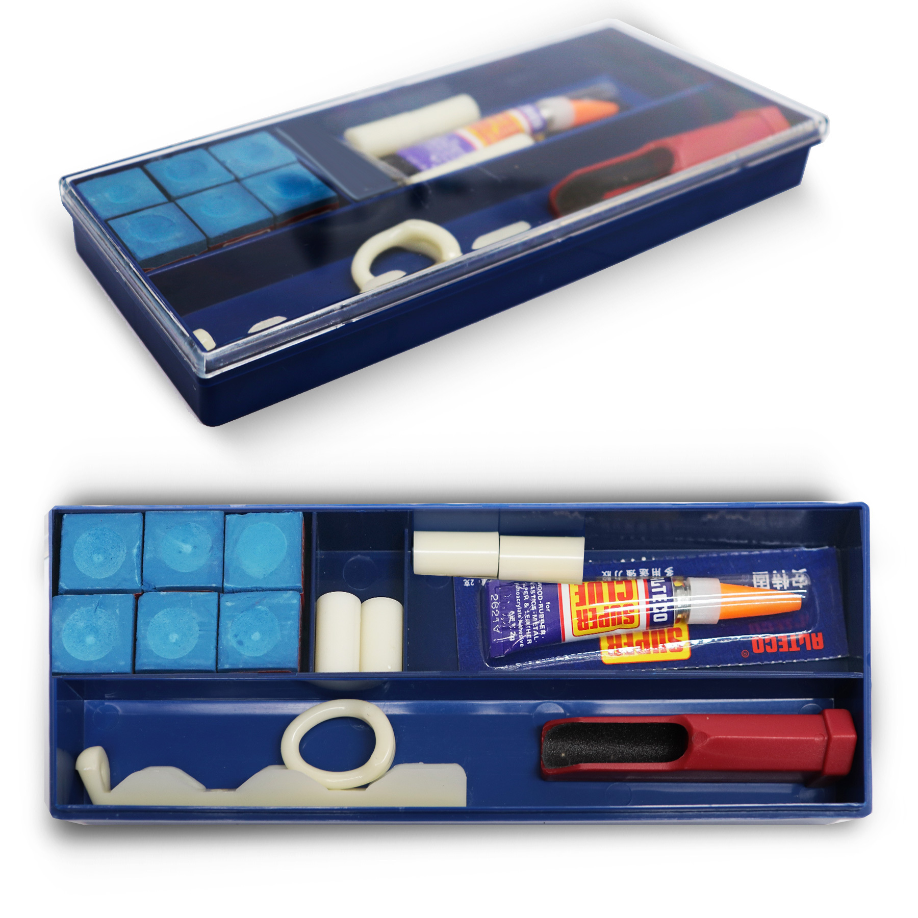 В данном наборе инструментов вы найдете все необходимое для установки наклейки на кий и поддержании ее в хорошем состоянии.