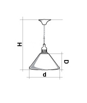 Светильники Startbilliards производства ФС «Горизонт» с 1-м плафоном станет ярким дополнением интерьера, если его установить для акцента какой-либо зоны бильярдной комнаты. Это может быть зона отдыха, барная стойка или зона ресепшн. Условные схематические обозначения: Н — общая высота светильника / 1390 мм D — высота плафона / 300 мм d — диаметр плафона / 370 мм