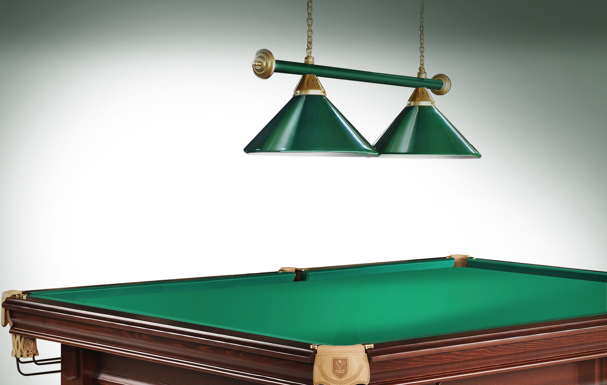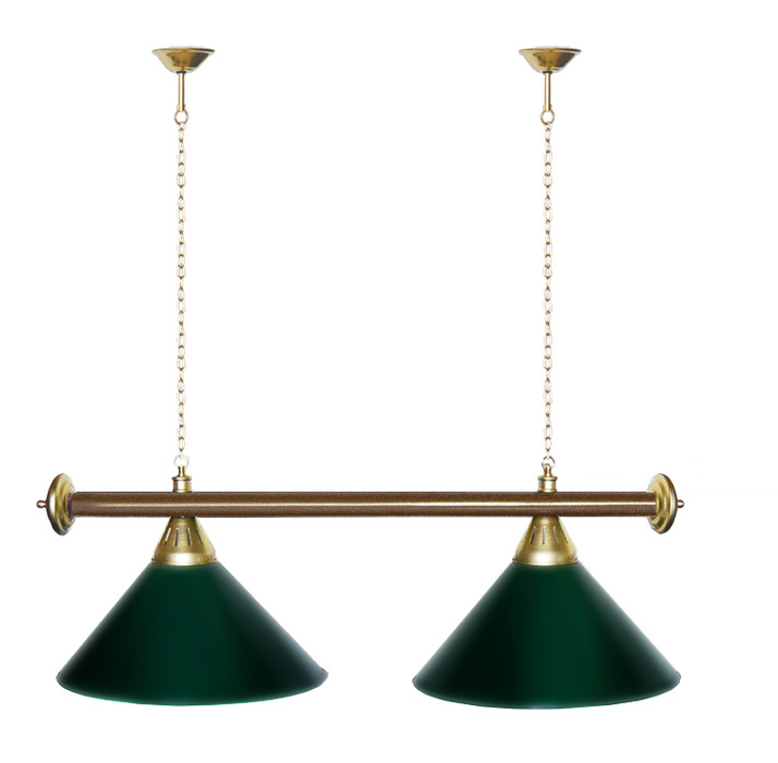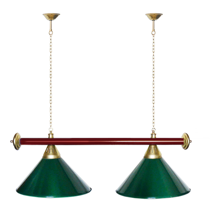Светильники Startbilliards производства ФС «Горизонт» с 2-мя плафонами комплектуются к столам 6 и 7 футов. Укомплектованы цельной металлической штангой с полимерным покрытием. Штанга изготовлена из цельной трубы, что исключает искривление конструкции. Применение керамических патронов #40;Е27#41; увеличивает срок эксплуатации светильника. Металлические плафоны крепятся с помощью зажимных пластин. Длина подвесной цепи 100 см — оптимальное расстояние для расположения источника света над игровым полем стола. В комплект включены две потолочные чашки. Штанга и плафоны поставляются в отдельных упаковках. Условные схематические обозначения: Н — общая высота светильника / 1420 мм L — общая длина светильника / 920 мм D — высота плафона / 300 мм d — диаметр плафона / 370 мм C — расстояние между осями / 500 мм