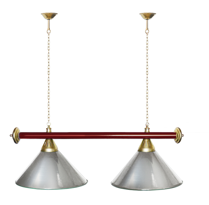 Светильники Startbilliards производства ФС «Горизонт» с 2-мя плафонами комплектуются к столам 6 и 7 футов. Укомплектованы цельной металлической штангой с полимерным покрытием. Штанга изготовлена из цельной трубы, что исключает искривление конструкции. Применение керамических патронов #40;Е27#41; увеличивает срок эксплуатации светильника. Металлические плафоны крепятся с помощью зажимных пластин. Длина подвесной цепи 100 см — оптимальное расстояние для расположения источника света над игровым полем стола. В комплект включены две потолочные чашки. Штанга и плафоны поставляются в отдельных упаковках. Условные схематические обозначения: Н — общая высота светильника / 1420 мм L — общая длина светильника / 920 мм D — высота плафона / 300 мм d — диаметр плафона / 370 мм C — расстояние между осями / 500 мм