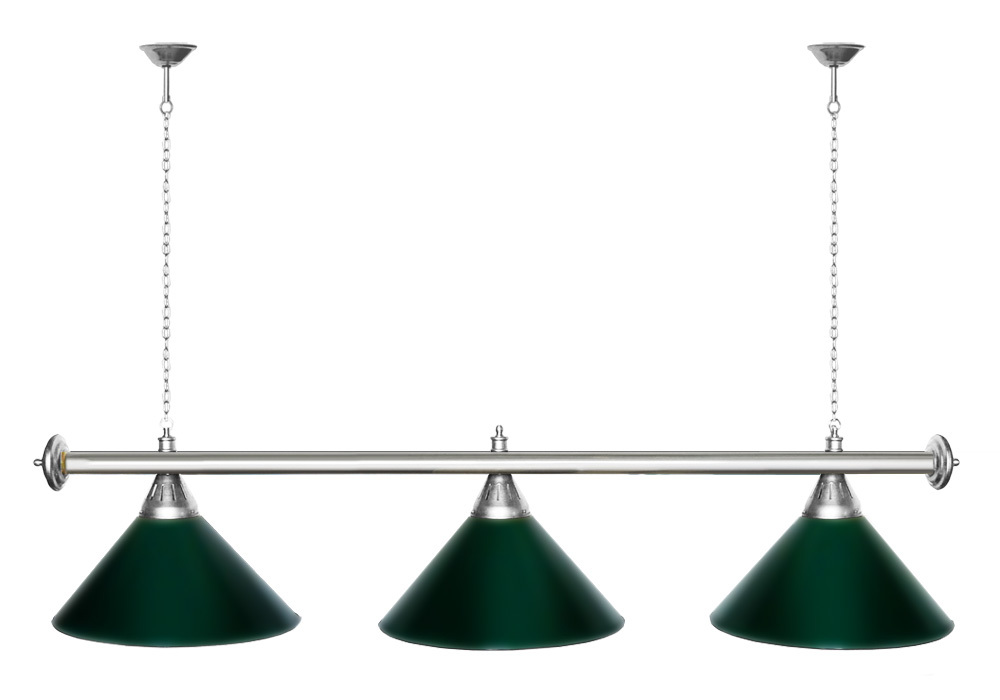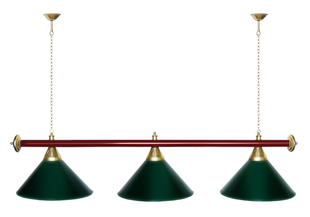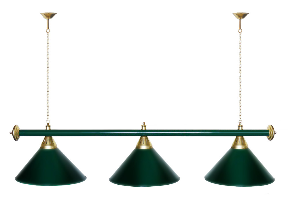 Светильники Startbilliards производства ФС «Горизонт» с 3-мя плафонами комплектуются к столам 7 и 8 футов. Укомплектованы цельной металлической штангой с полимерным покрытием. Штанга изготовлена из цельной трубы, что исключает искривление конструкции. Применение керамических патронов #40;Е27#41; увеличивает срок эксплуатации светильника. Металлические плафоны крепятся с помощью зажимных пластин. Длина подвесной цепи 100 см — оптимальное расстояние для расположения источника света над игровым полем стола. В комплект включены две потолочные чашки. Условные схематические обозначения: Н — общая высота светильника / 1420 мм L — общая длина светильника / 1420nbsp;nbsp;мм D — высота плафона / 300 мм d — диаметр плафона / 370 мм C — расстояние между осями / 500 мм Штанга и плафоны поставляются в отдельных упаковках.