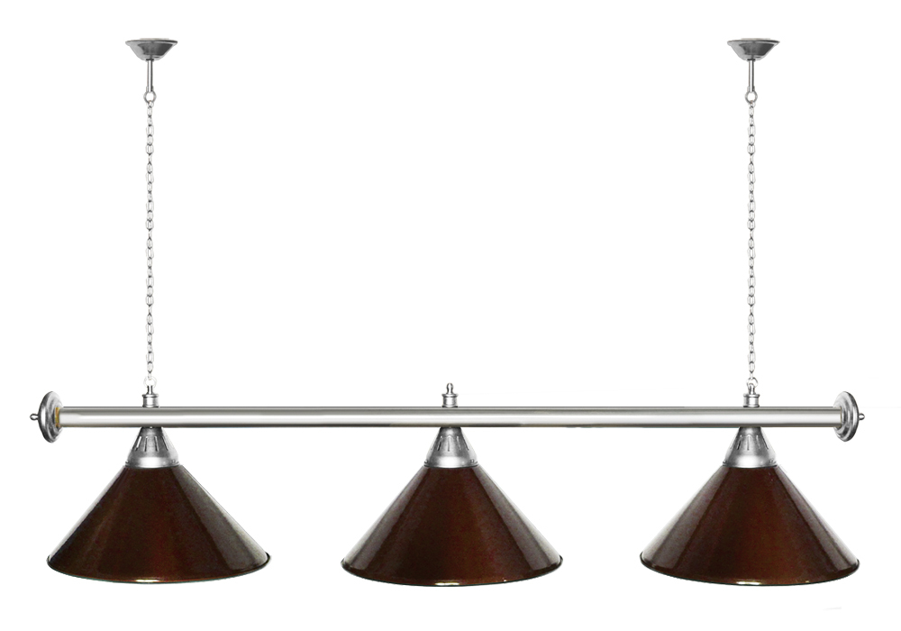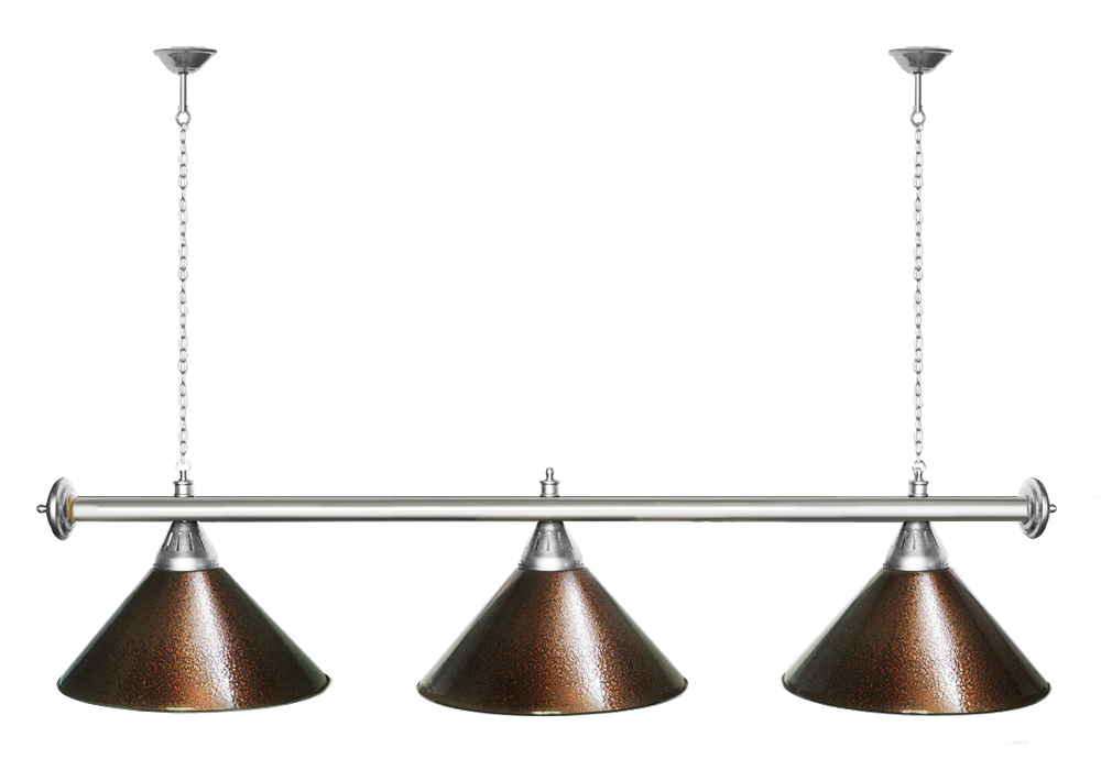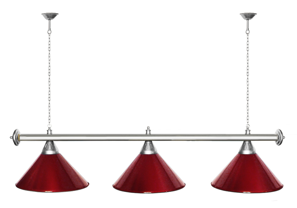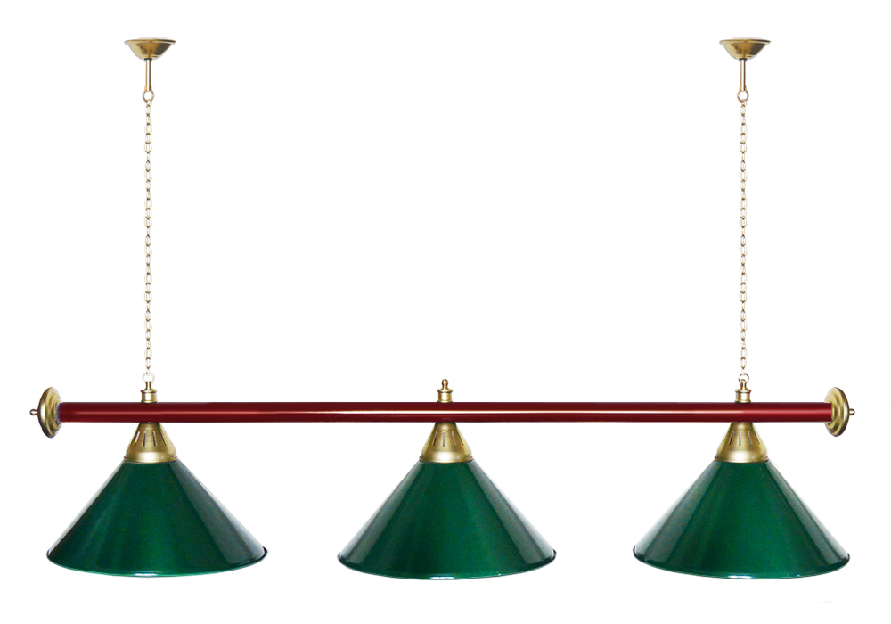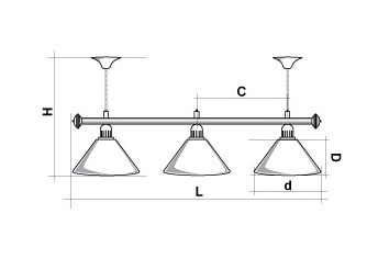 Светильники Startbilliards производства ФС «Горизонт» с 3-мя плафонами комплектуются к столам 7 и 8 футов. Укомплектованы цельной металлической штангой с полимерным покрытием. Штанга изготовлена из цельной трубы, что исключает искривление конструкции. Применение керамических патронов #40;Е27#41; увеличивает срок эксплуатации светильника. Металлические плафоны крепятся с помощью зажимных пластин. Длина подвесной цепи 100 см — оптимальное расстояние для расположения источника света над игровым полем стола. В комплект включены две потолочные чашки. Условные схематические обозначения: Н — общая высота светильника / 1420 мм L — общая длина светильника / 1420nbsp;nbsp;мм D — высота плафона / 300 мм d — диаметр плафона / 370 мм C — расстояние между осями / 500 мм Штанга и плафоны поставляются в отдельных упаковках.
