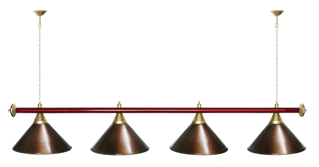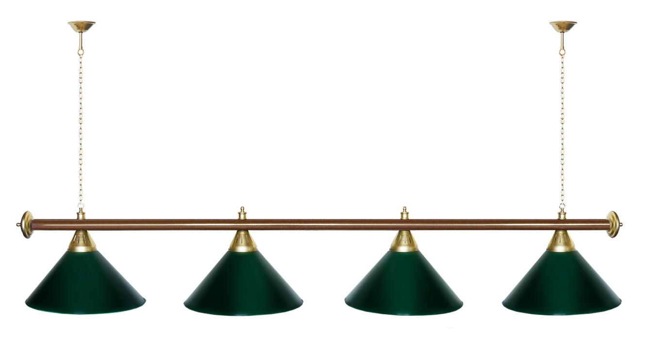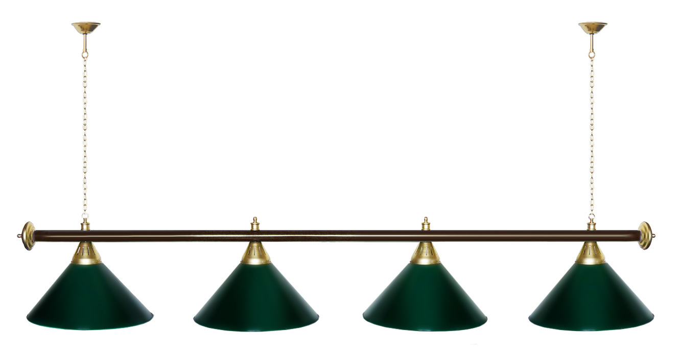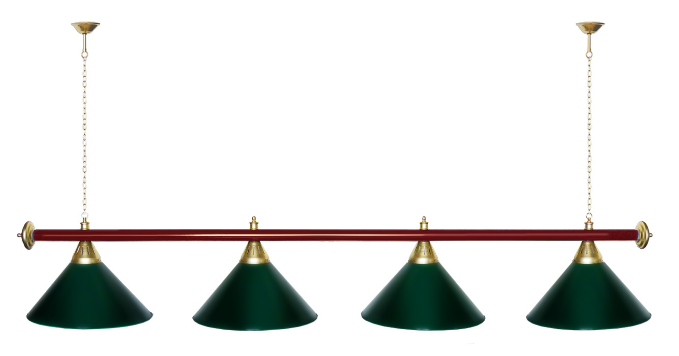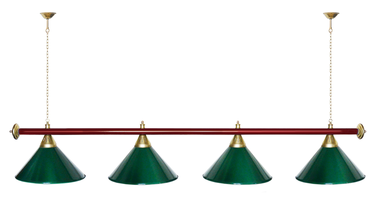 Светильники Startbilliards производства ФС «Горизонт» с 4-мя плафонами комплектуются к столам 8 и 9 футов. Укомплектованы цельной металлической штангой с полимерным покрытием. Штанга изготовлена из цельной трубы, что исключает искривление конструкции. Применение керамических патронов #40;Е27#41; увеличивает срок эксплуатации светильника. Металлические плафоны крепятся с помощью зажимных пластин. Длина подвесной цепи 100 см — оптимальное расстояние для расположения источника света над игровым полем стола. В комплект включены две потолочные чашки диаметром 10 см. Штанга и плафоны поставляются в отдельных упаковках. Условные схематические обозначения: Н — общая высота светильника / 1420 мм L — общая длина светильника / 1920nbsp;nbsp;мм D — высота плафона / 300 мм d — диаметр плафона / 370 мм C — расстояние между осями / 500 мм Штанга и плафоны поставляются в отдельных упаковках.