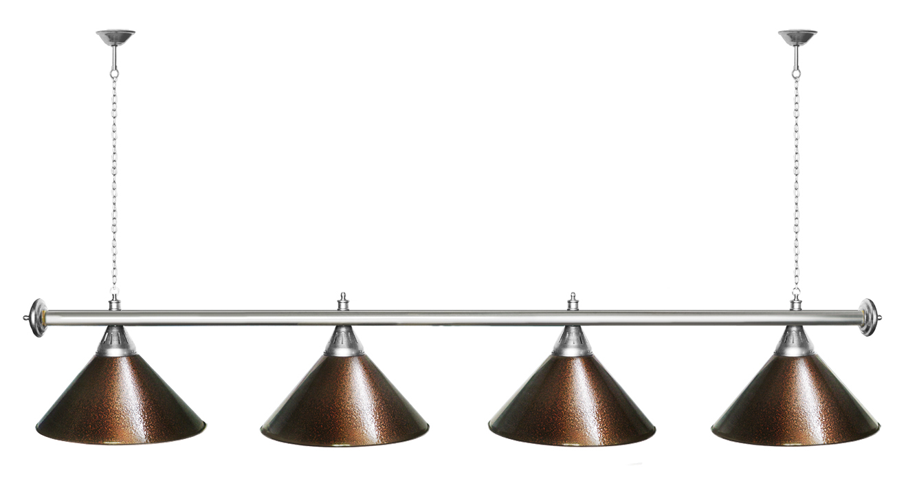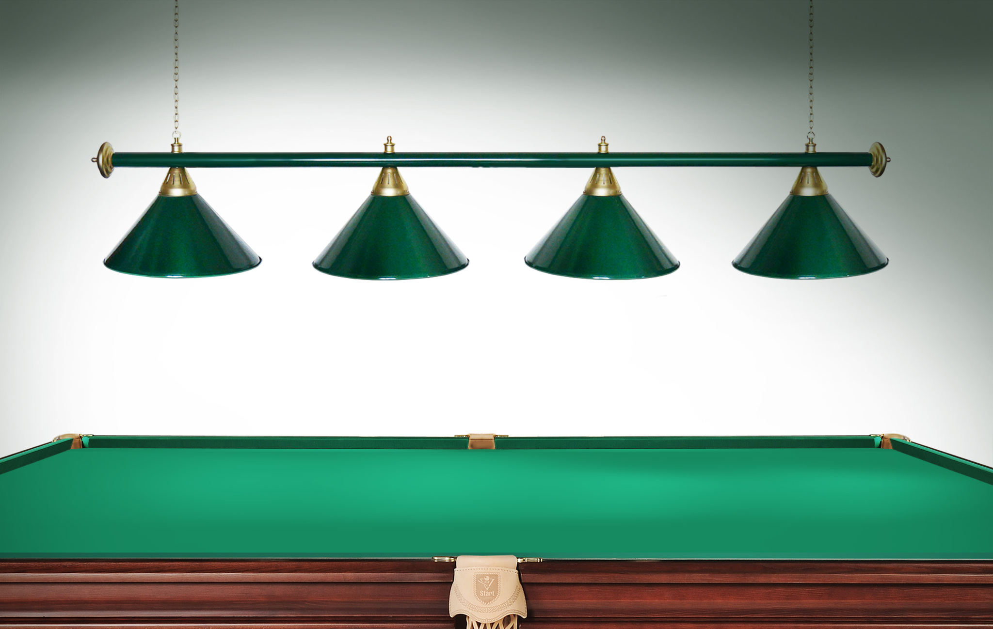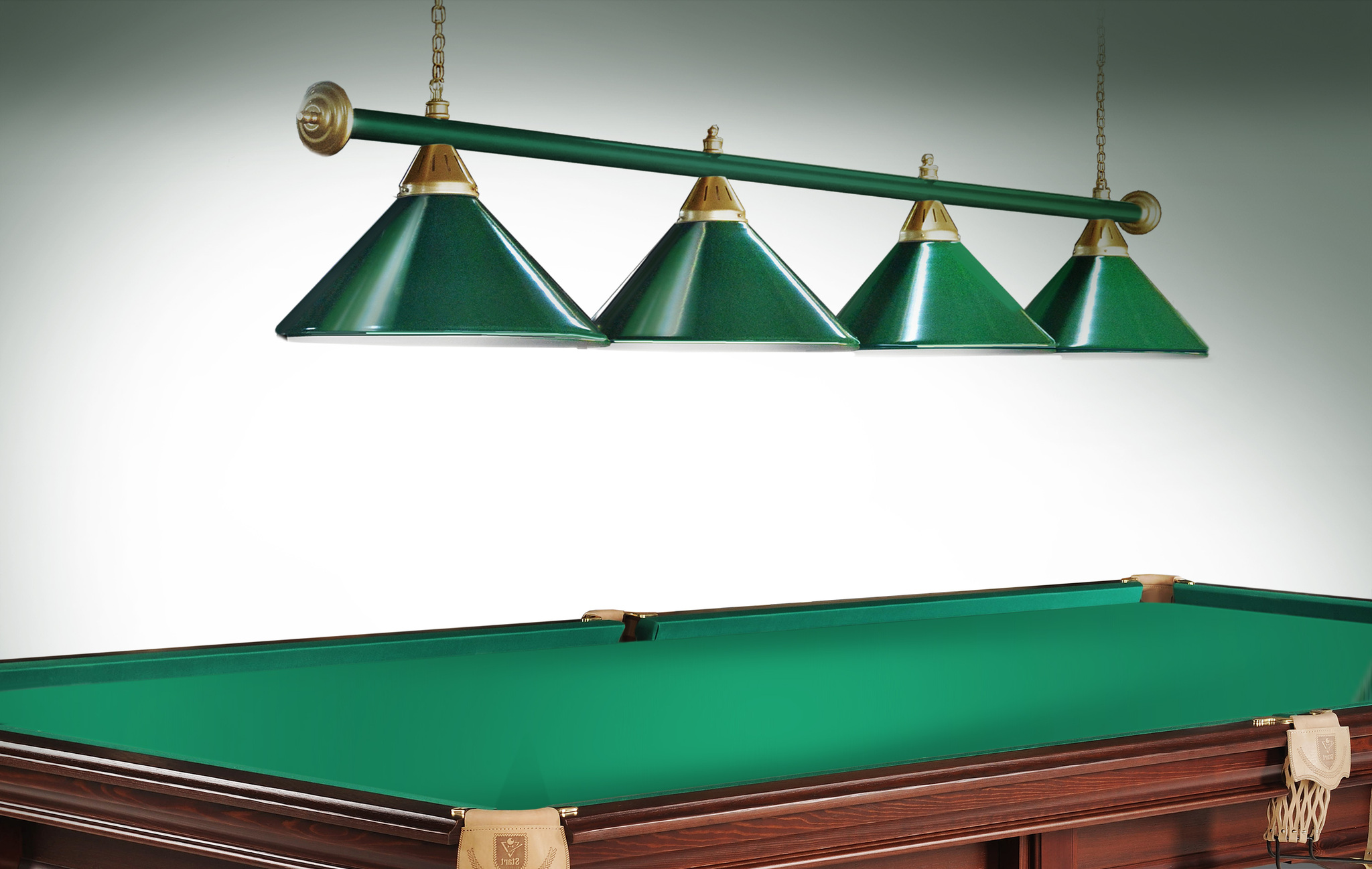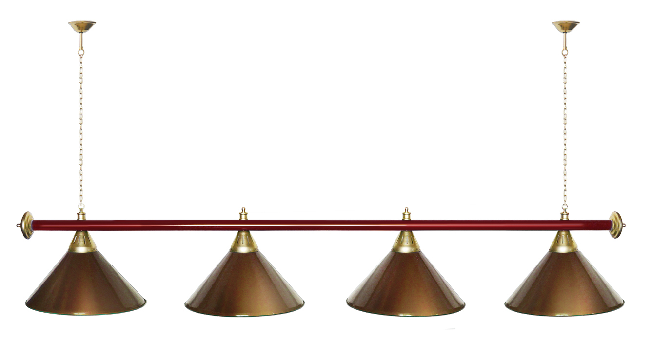 Светильники Startbilliards производства ФС «Горизонт» с 4-мя плафонами комплектуются к столам 8 и 9 футов. Укомплектованы цельной металлической штангой с полимерным покрытием. Штанга изготовлена из цельной трубы, что исключает искривление конструкции. Применение керамических патронов #40;Е27#41; увеличивает срок эксплуатации светильника. Металлические плафоны крепятся с помощью зажимных пластин. Длина подвесной цепи 100 см — оптимальное расстояние для расположения источника света над игровым полем стола. В комплект включены две потолочные чашки диаметром 10 см. Штанга и плафоны поставляются в отдельных упаковках. Условные схематические обозначения: Н — общая высота светильника / 1420 мм L — общая длина светильника / 1920nbsp;nbsp;мм D — высота плафона / 300 мм d — диаметр плафона / 370 мм C — расстояние между осями / 500 мм Штанга и плафоны поставляются в отдельных упаковках.