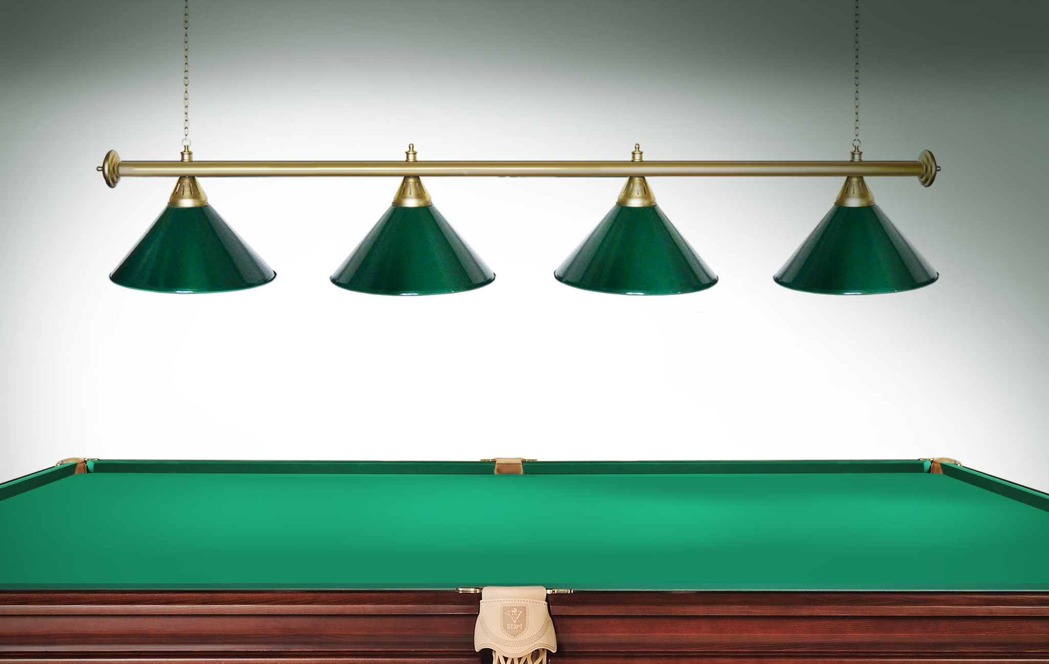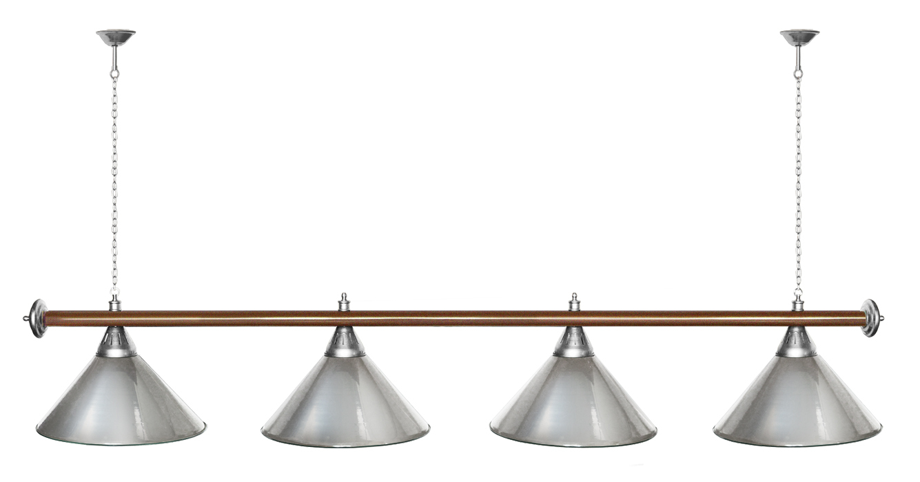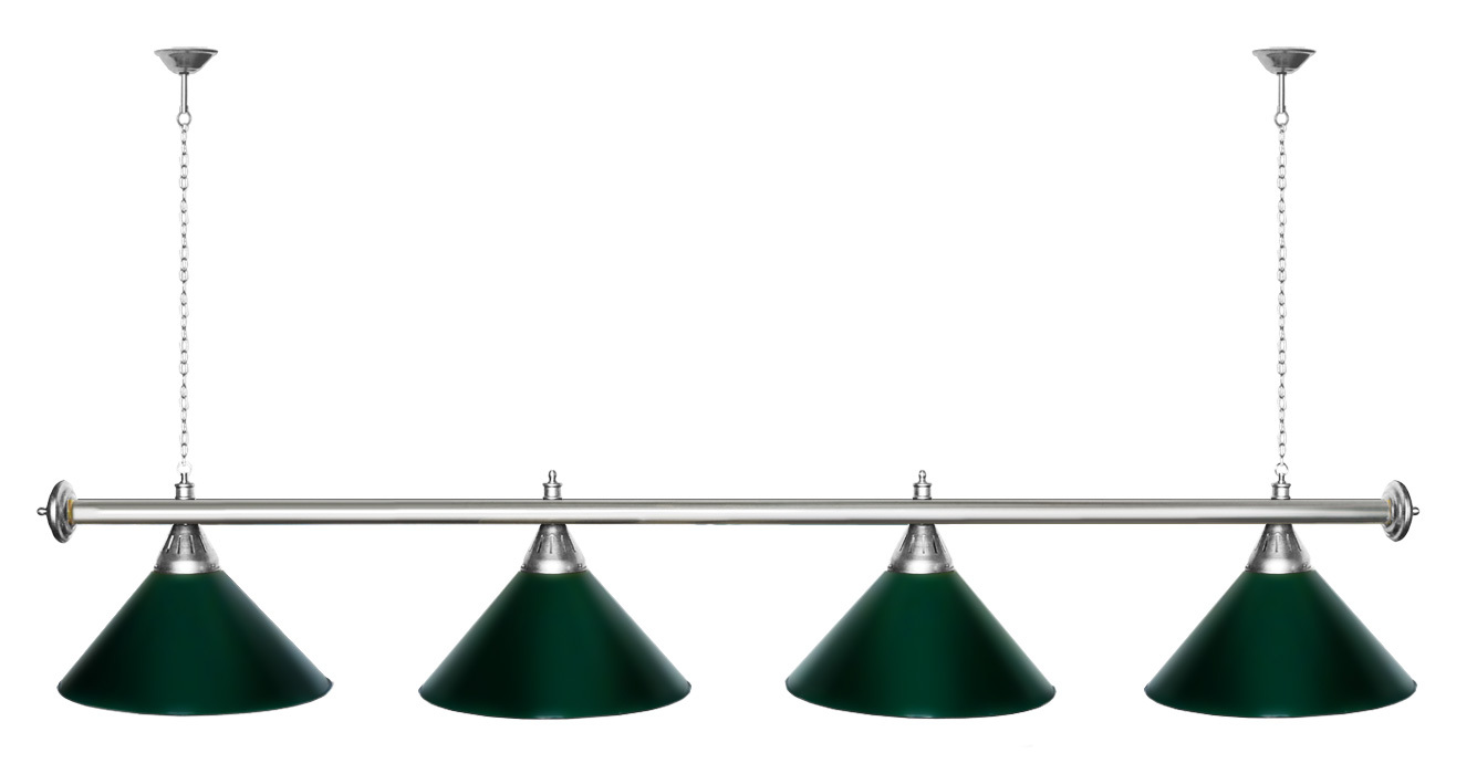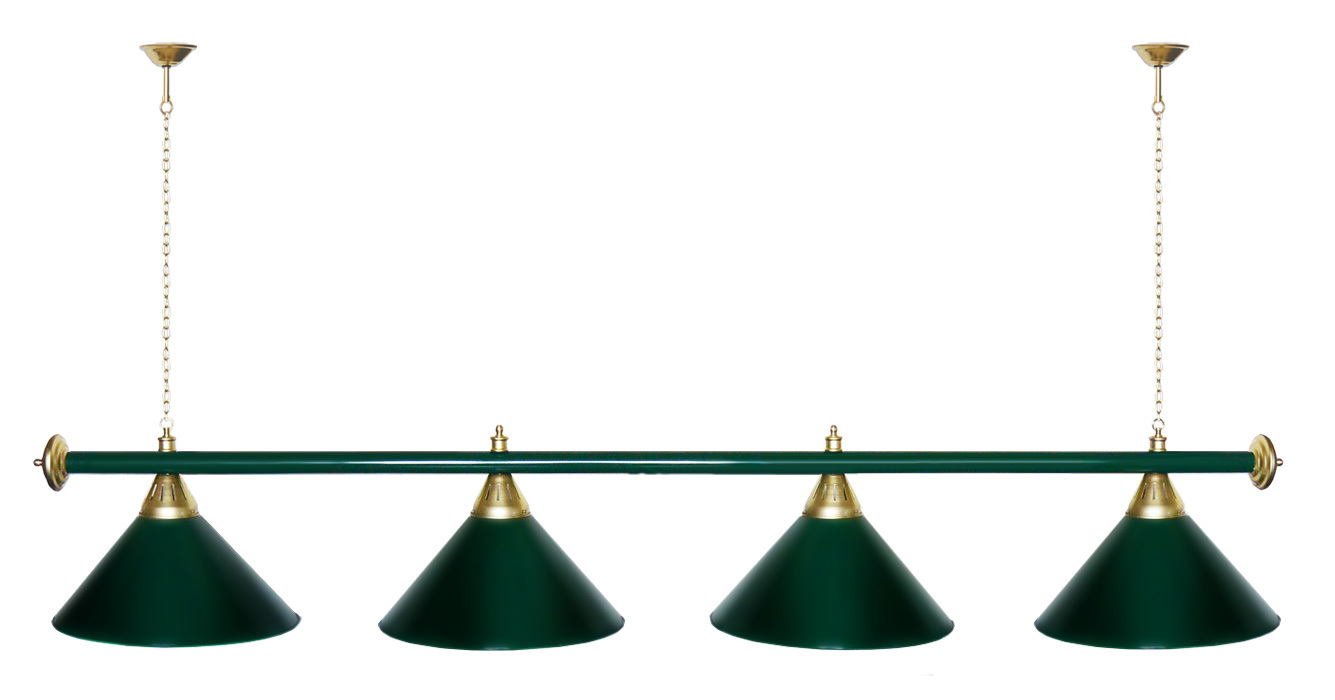 Светильники Startbilliards производства ФС «Горизонт» с 4-мя плафонами комплектуются к столам 8 и 9 футов. Укомплектованы цельной металлической штангой с полимерным покрытием. Штанга изготовлена из цельной трубы, что исключает искривление конструкции. Применение керамических патронов #40;Е27#41; увеличивает срок эксплуатации светильника. Металлические плафоны крепятся с помощью зажимных пластин. Длина подвесной цепи 100 см — оптимальное расстояние для расположения источника света над игровым полем стола. В комплект включены две потолочные чашки диаметром 10 см. Штанга и плафоны поставляются в отдельных упаковках. Условные схематические обозначения: Н — общая высота светильника / 1420 мм L — общая длина светильника / 1920nbsp;nbsp;мм D — высота плафона / 300 мм d — диаметр плафона / 370 мм C — расстояние между осями / 500 мм Штанга и плафоны поставляются в отдельных упаковках.