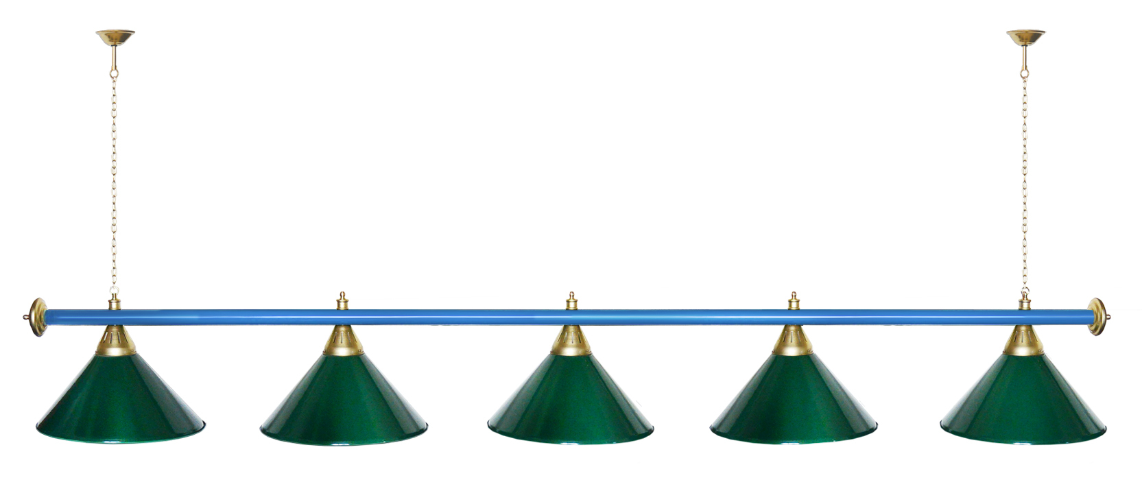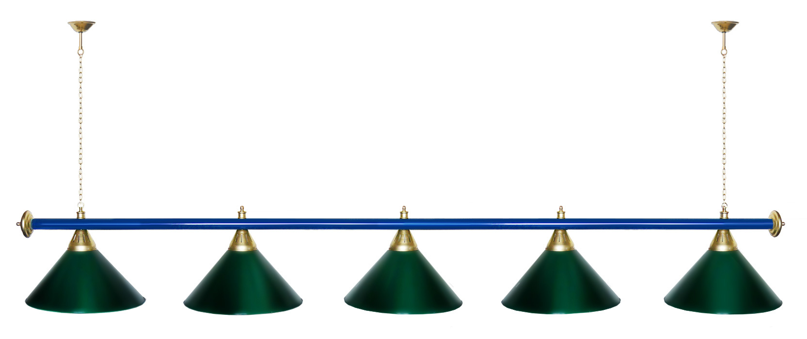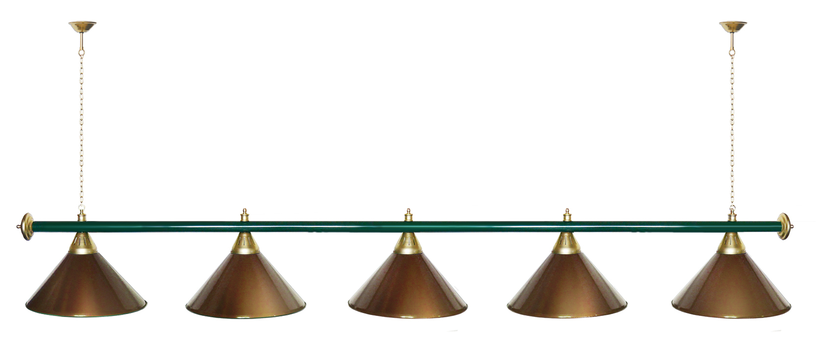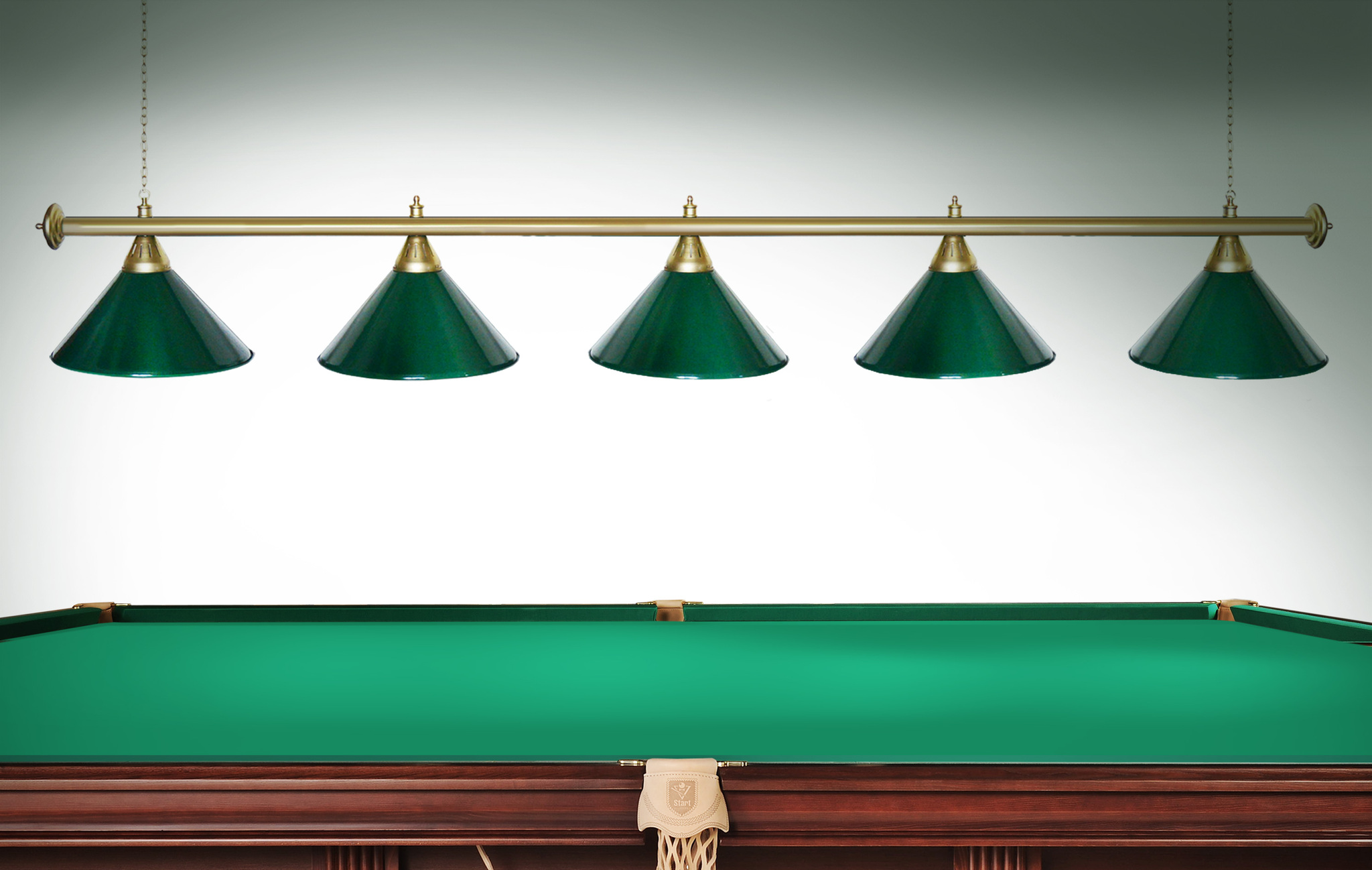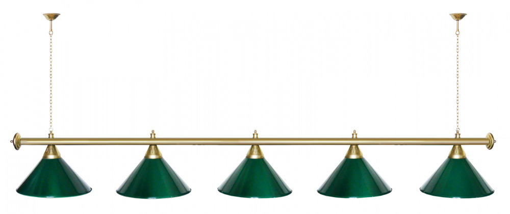 Лампа STARTBILLIARDS 5 пл. (плафоны зеленые,штанга золотая,фурнитура золото)