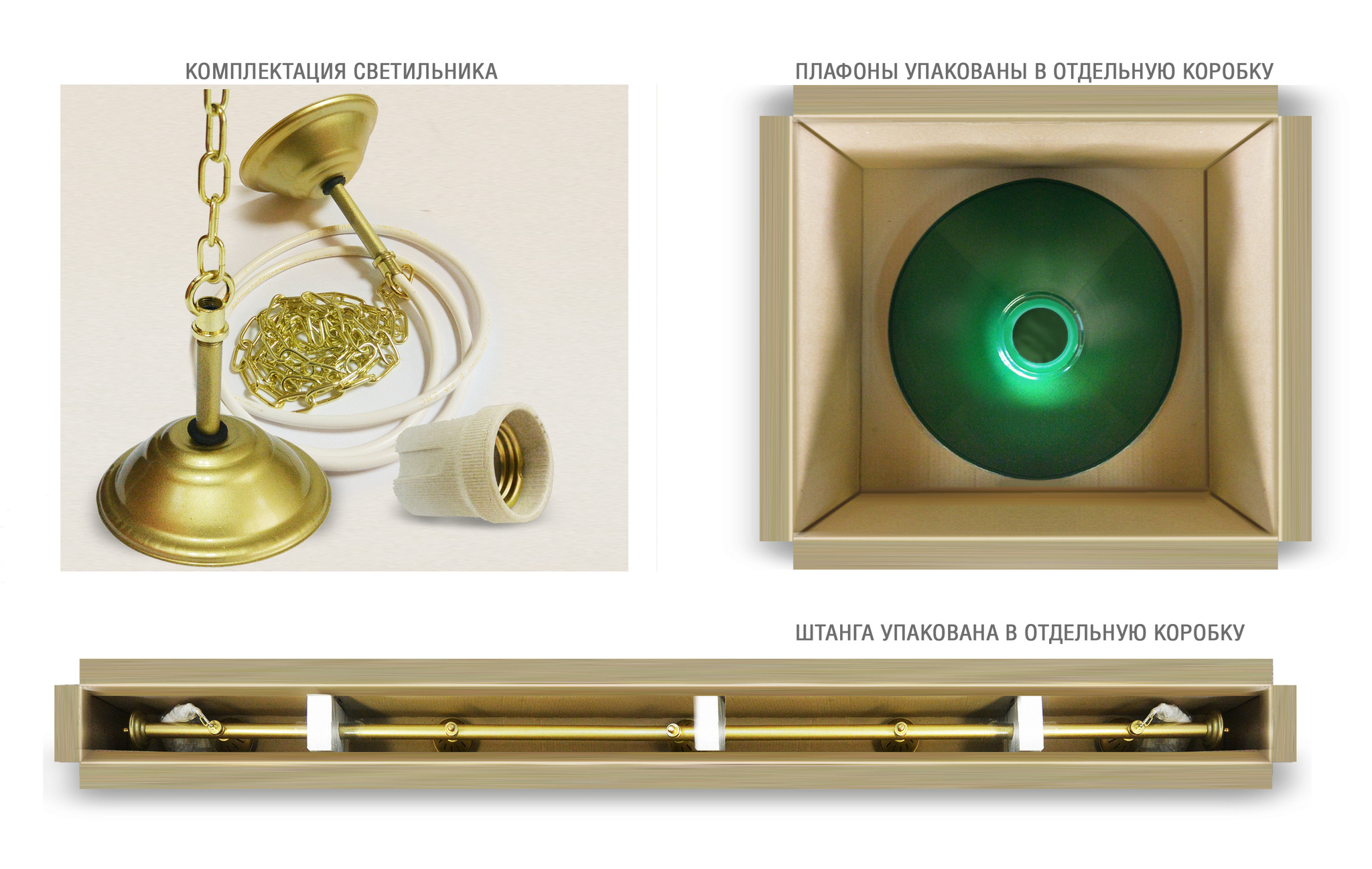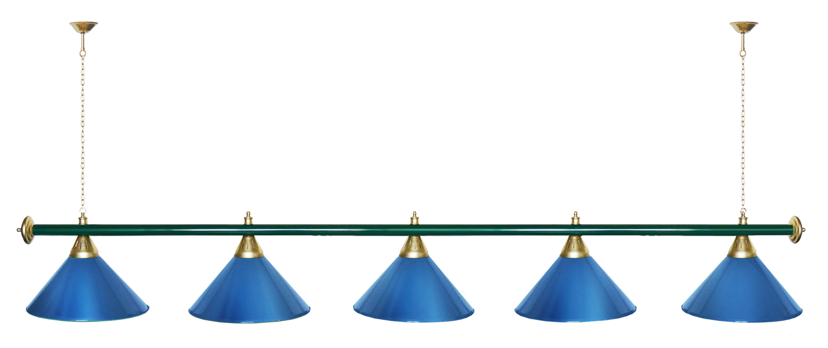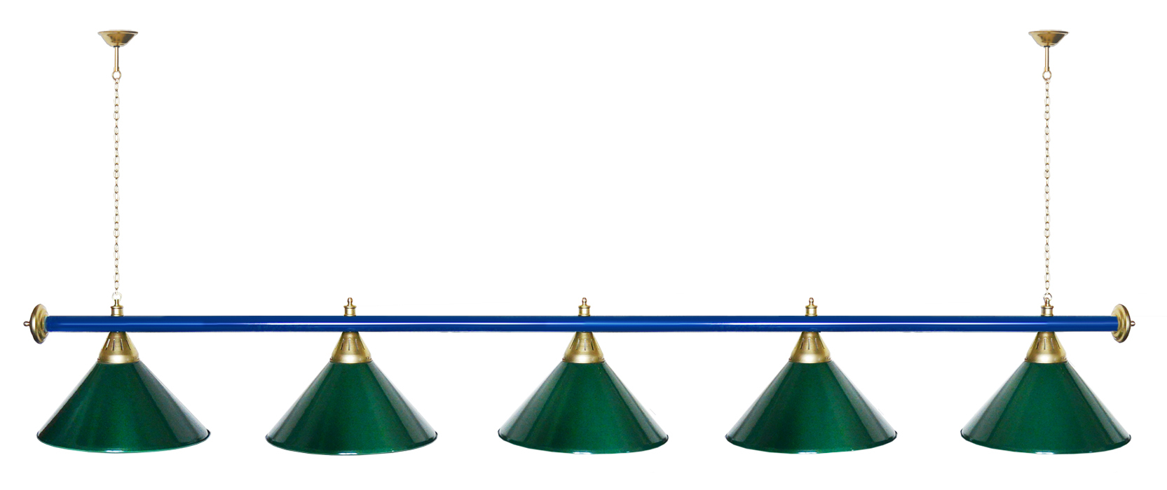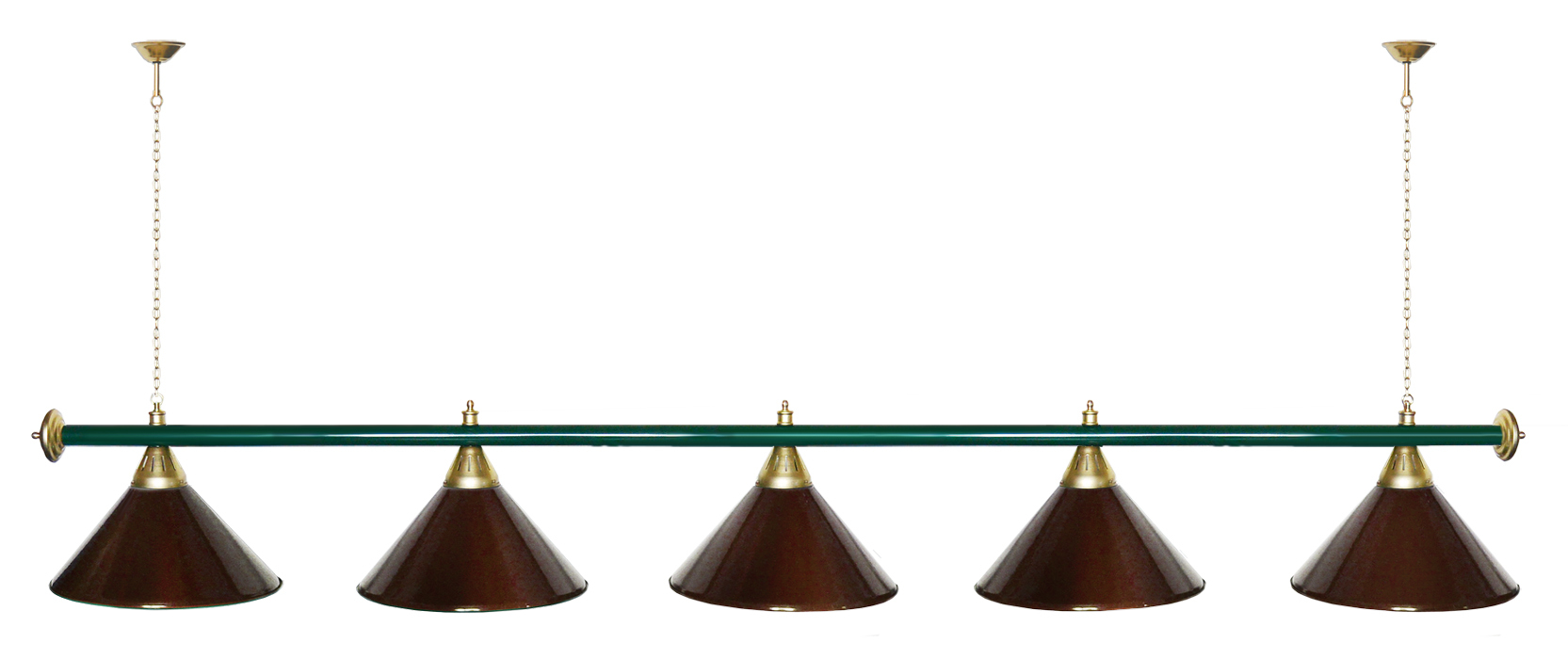 Лампа STARTBILLIARDS 5 пл. (плафоны зеленые,штанга золотая,фурнитура золото)