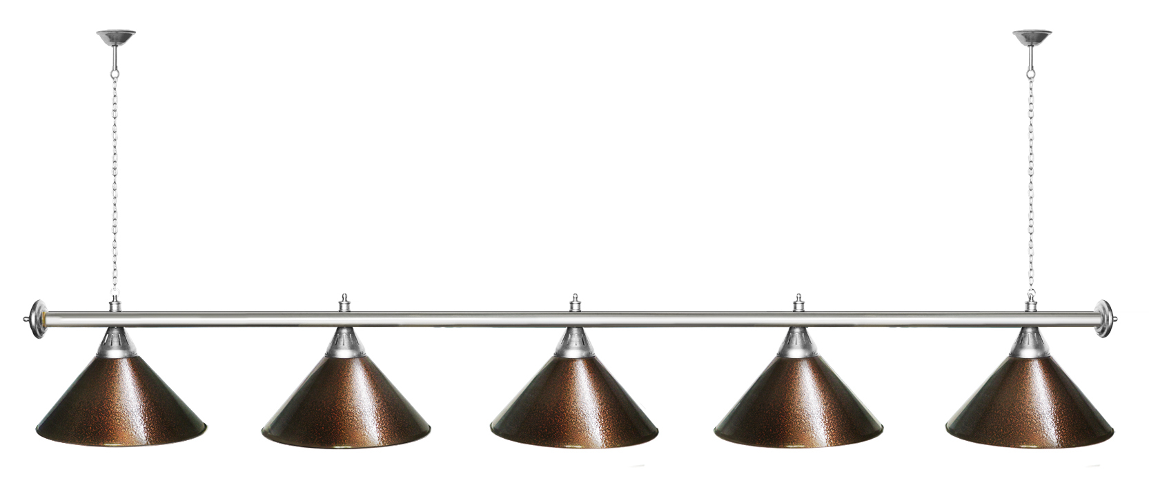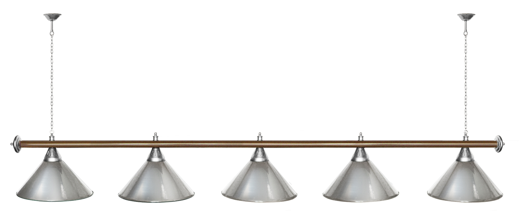 Светильники Startbilliards производства ФС «Горизонт» с 5-ю плафонами комплектуются к столам 10 футов. Укомплектованы цельной металлической штангой с полимерным покрытием. Штанга изготовлена из цельной трубы, что исключает искривление конструкции. Применение керамических патронов #40;Е27#41; увеличивает срок эксплуатации светильника. Металлические плафоны крепятся с помощью зажимных пластин. Длина подвесной цепи 100 см — оптимальное расстояние для расположения источника света над игровым полем стола. В комплект включены две потолочные чашки. Условные схематические обозначения: Н — общая высота светильника / 1420 мм L — общая длина светильника / 2420nbsp;nbsp;мм D — высота плафона / 300 мм d — диаметр плафона / 370 мм C — расстояние между осями / 500 мм Штанга и плафоны поставляются в отдельных упаковках.