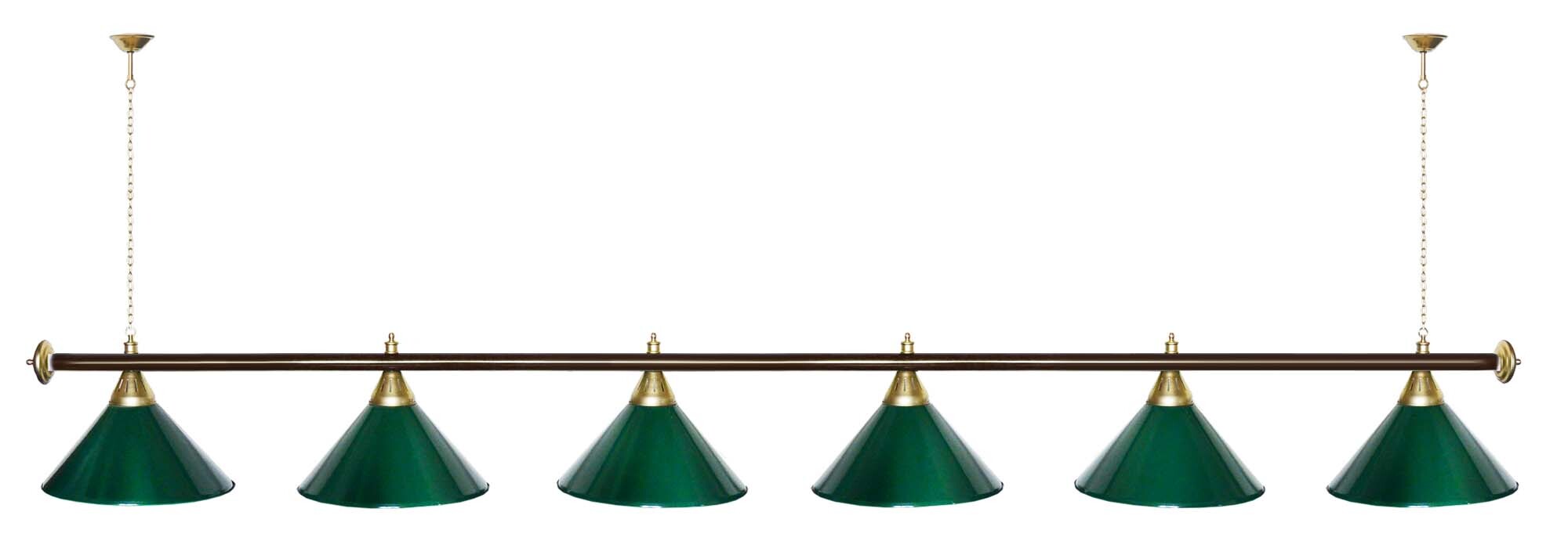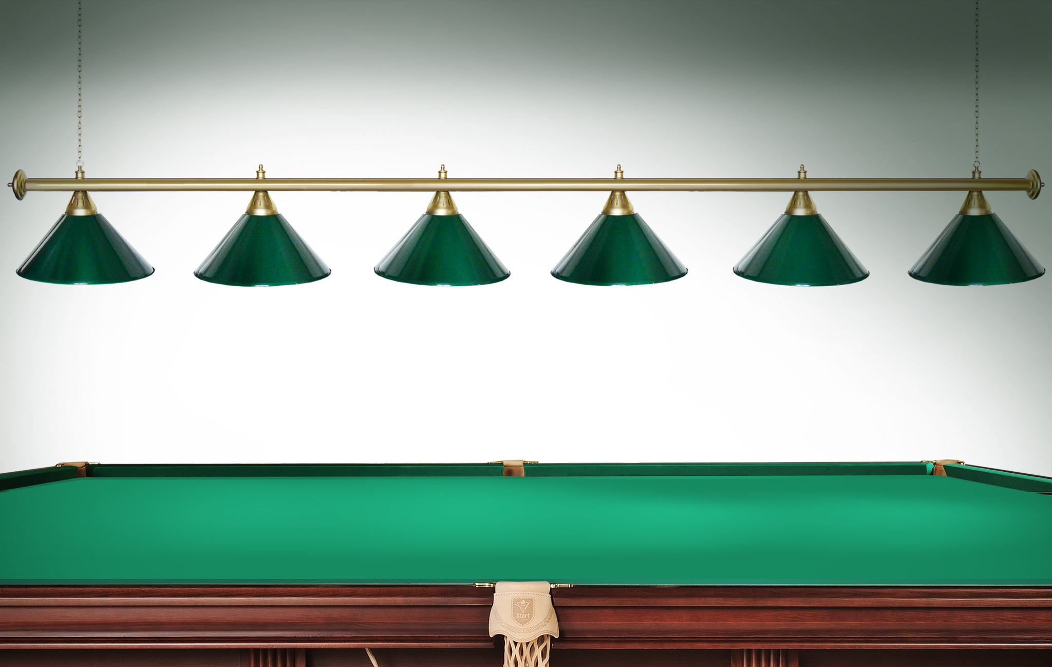 Светильники Startbilliards производства ФС «Горизонт» с 6-ю плафонами комплектуются к столам 12 футов. Укомплектованы цельной металлической штангой с полимерным покрытием. Штанга изготовлена из цельной трубы, что исключает искривление конструкции. Применение керамических патронов #40;Е27#41; увеличивает срок эксплуатации светильника. Металлические плафоны крепятся с помощью зажимных пластин. Длина подвесной цепи 100 см — оптимальное расстояние для расположения источника света над игровым полем стола. В комплект включены две потолочные чашки. Условные схематические обозначения: Н — общая высота светильника / 1420 мм L — общая длина светильника / 2920 мм D — высота плафона / 300 мм d — диаметр плафона / 370 мм C — расстояние между осями / 500 мм Штанга и плафоны поставляются в отдельных упаковках.