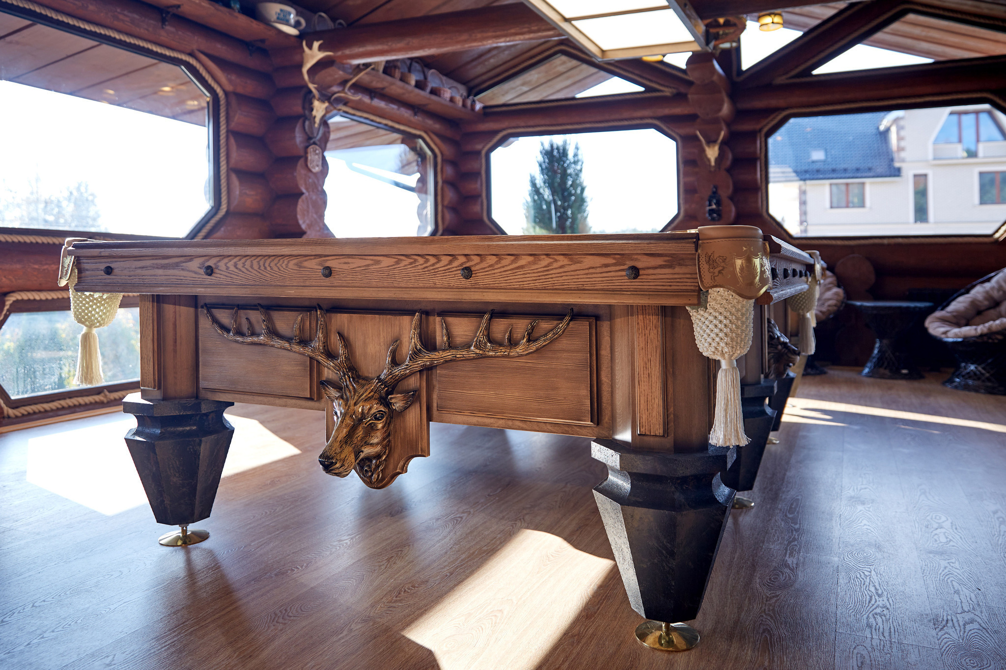 Бильярдный стол «Охота» — новый представитель эксклюзивной серии бильярдных столов для игры в Пирамиду. Образ стола призван подчеркнуть стилистику интерьера гостиной комнаты, каминного зала загородного дома или трофейной комнаты.