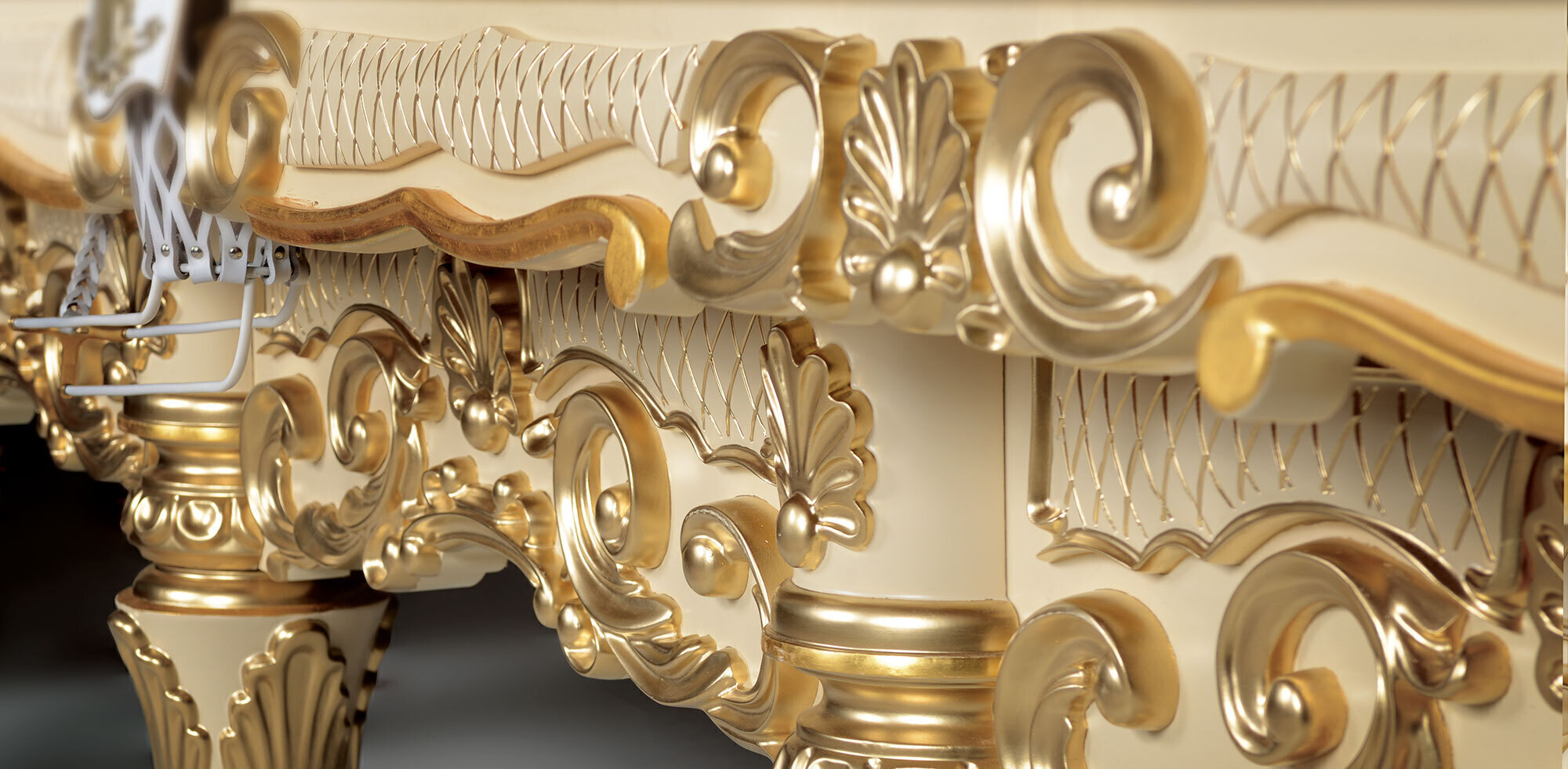 Модель «Ренессанс Голд» достойна того, чтобы украсить интерьер самых пышных апартаментов. Созданный в стиле эпохи Возрождения, этот стол поражает роскошью отделки. Для декорирования «Ренессанс Голд» мастера Фабрики «Старт» используют сусальное золото в 23 карата. Работая по авторским эскизам, мы смогли придать столу индивидуальность, свой неповторимый, запоминающийся характер. Благодаря лакам высокого качества удалось сделать акцент на структуре древесины.