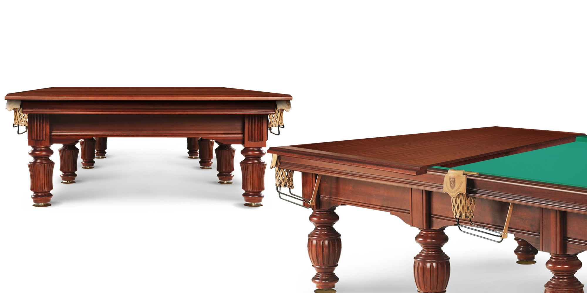 Столешница для бильярда быстро и легко превратит зону игры в территорию гостиной, а стол бильярдный - в фуршетный. Съемная столешница станет оптимальным вариантом для личной бильярдной. Если у вас уже есть свой бильярдный стол, а в помещении немного свободного места - эта деталь станет полезным атрибутом. Не зависимо от того, сколько футов ваш стол, поле столешницы состоит из 3-х частей, которые легко модифицируется в единую поверхность, соединяются между собой на латунные штифты и быстро устанавливаются. Столешница изготовлена в сочетании МДФ, облицованным натуральным шпоном ясеня, по периметру - массив ясеня. Выкраска столешницы разнообразна - вся палитра Фабрики «Старт» - цветовой вариант легко подобрать под любой вкус, к вашему столу. Бильярдный стол в такой оправе станет многофункциональным, не потеряв в солидности и привлекательности.