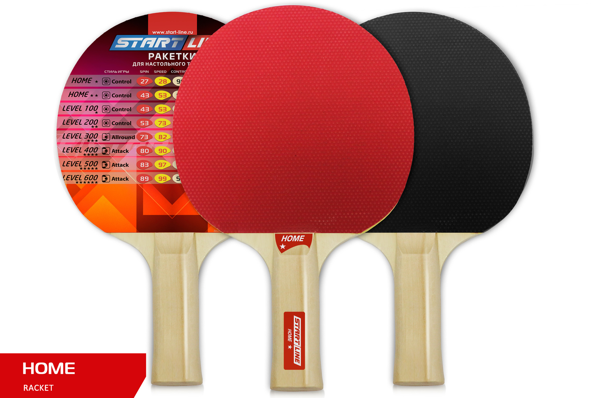 Ракетки для настольного тенниса Home предназначены для начинающих игроков, поэтому они имеют повышенный показатель контроля. Такие ракетки позволяют неопытному спортсмену лучше управлять мячом, повышая точность ударов и оттачивая свое мастерство. Для моделей серии Home используется 5-слойное основание из прочной фанеры, качественные накладки шипами наружу и губка толщиной 1,2- миллиметра.