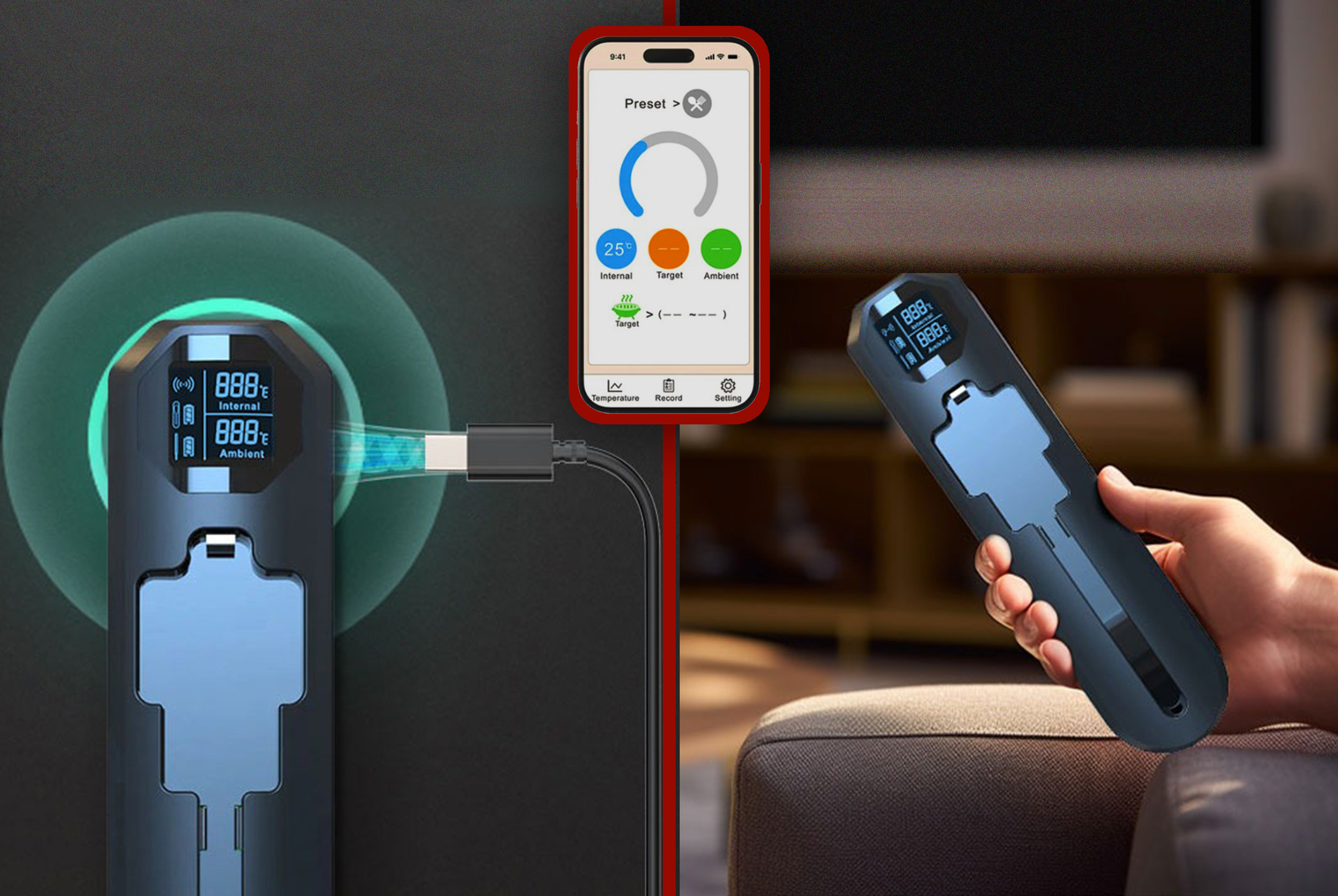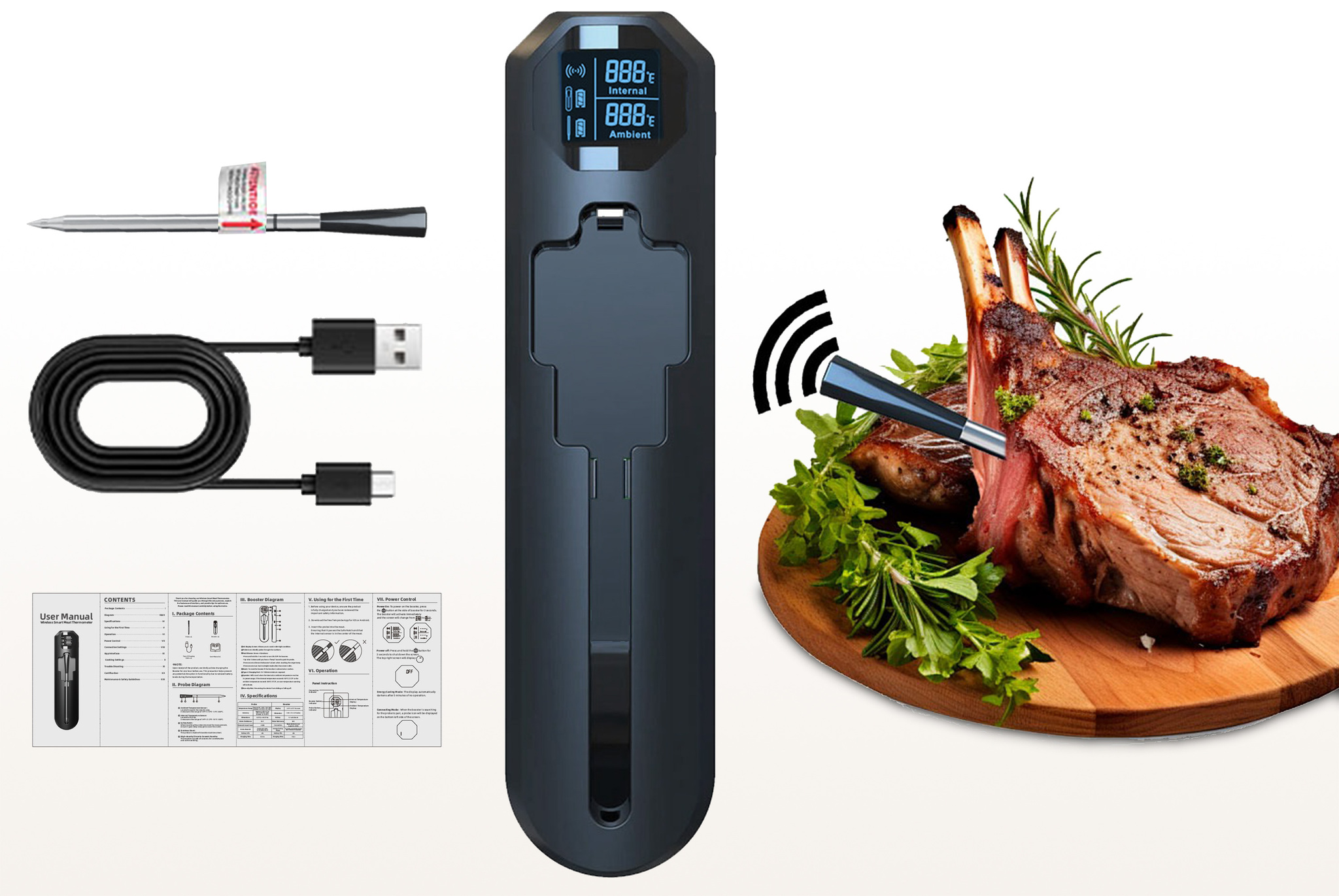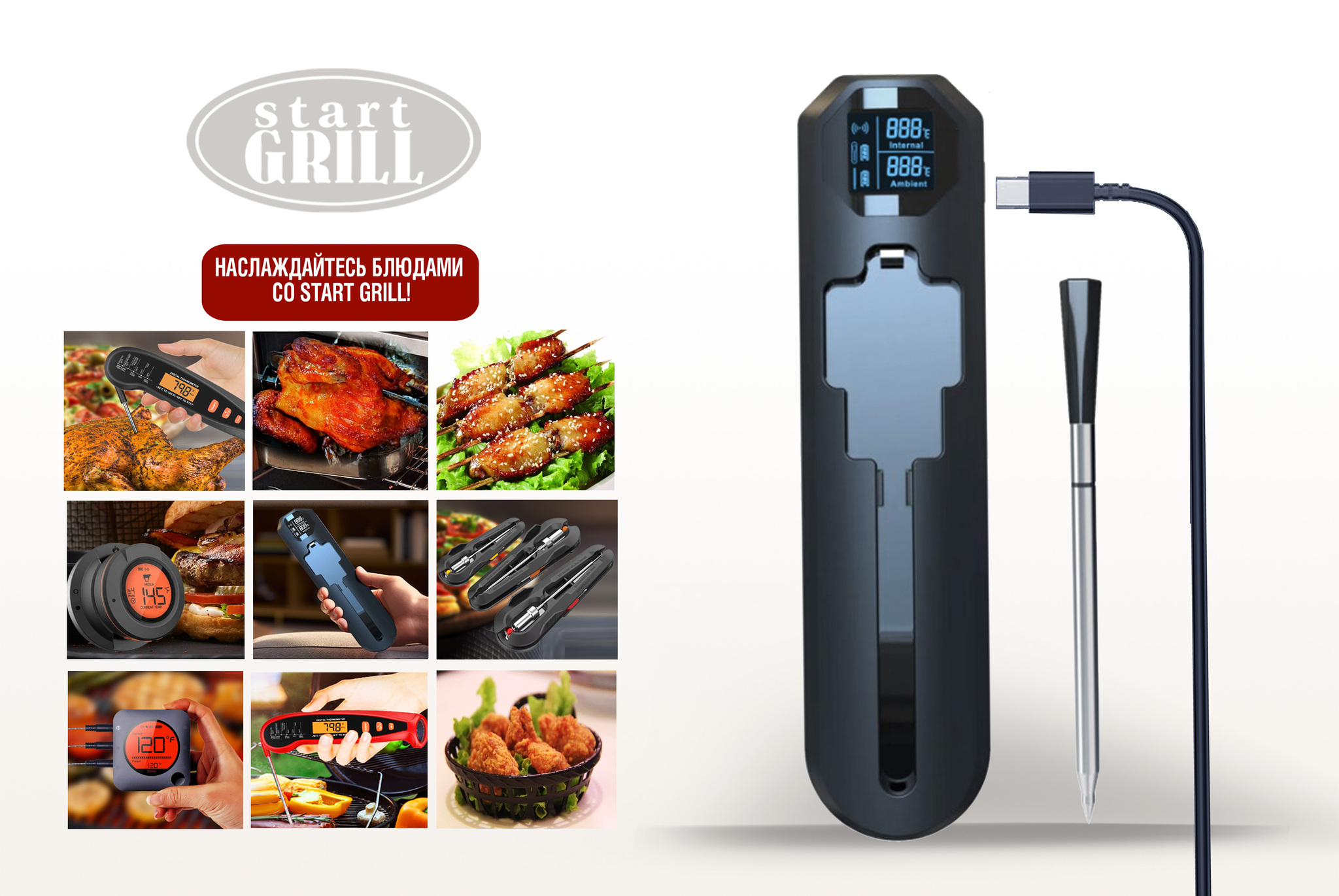 Интеллектуальный цифровой термометр Model 5 с Bluetooth и встроенным ретранслятором сочетает удобство беспроводного контроля и профессиональную точность измерения. Термометр оснащен тонким зондом из нержавеющей стали, что позволяет легко погружать его в мясо, рыбу, выпечку и другие продукты, не повреждая их. Двойной температурный мониторинг в диапазоне измеренияnbsp;nbsp;для пищевых продуктов от -10°C до 100°C #40;от 14°F до 212°F#41; и окружающей среды #40;барбекю/гриль#41;nbsp;nbsp;от 0°C до 300°C #40;от 32°F до 572°F#41; делает его универсальным для контроля температуры приготовления различных блюд. Удобный для считывания дисплей покажет температуру с точностью доnbsp;nbsp;±1°C для продуктов и ±3°C для окружающей среды. Удаленный мониторинг через мобильное приложение по Bluetooth со встроенным ретранслятором упрощает процесс, позволяя держать температуру приготовления под контролем на рекордном расстоянии до 250 м #40;820 футов#41;. Термометр работает без батареек, заряжаясь от USB кабеля. Цифровой термометр Model 5 идеален для приготовления мяса, рыбы, овощей на гриле и барбекю, контроля температуры копчения и sous-vide, профессионального использования на кухне и открытом воздухе. Благодаря пыле- и водонепроницаемости, а также прочному корпусу подходит для активного использования на кухне и свежем воздухе.