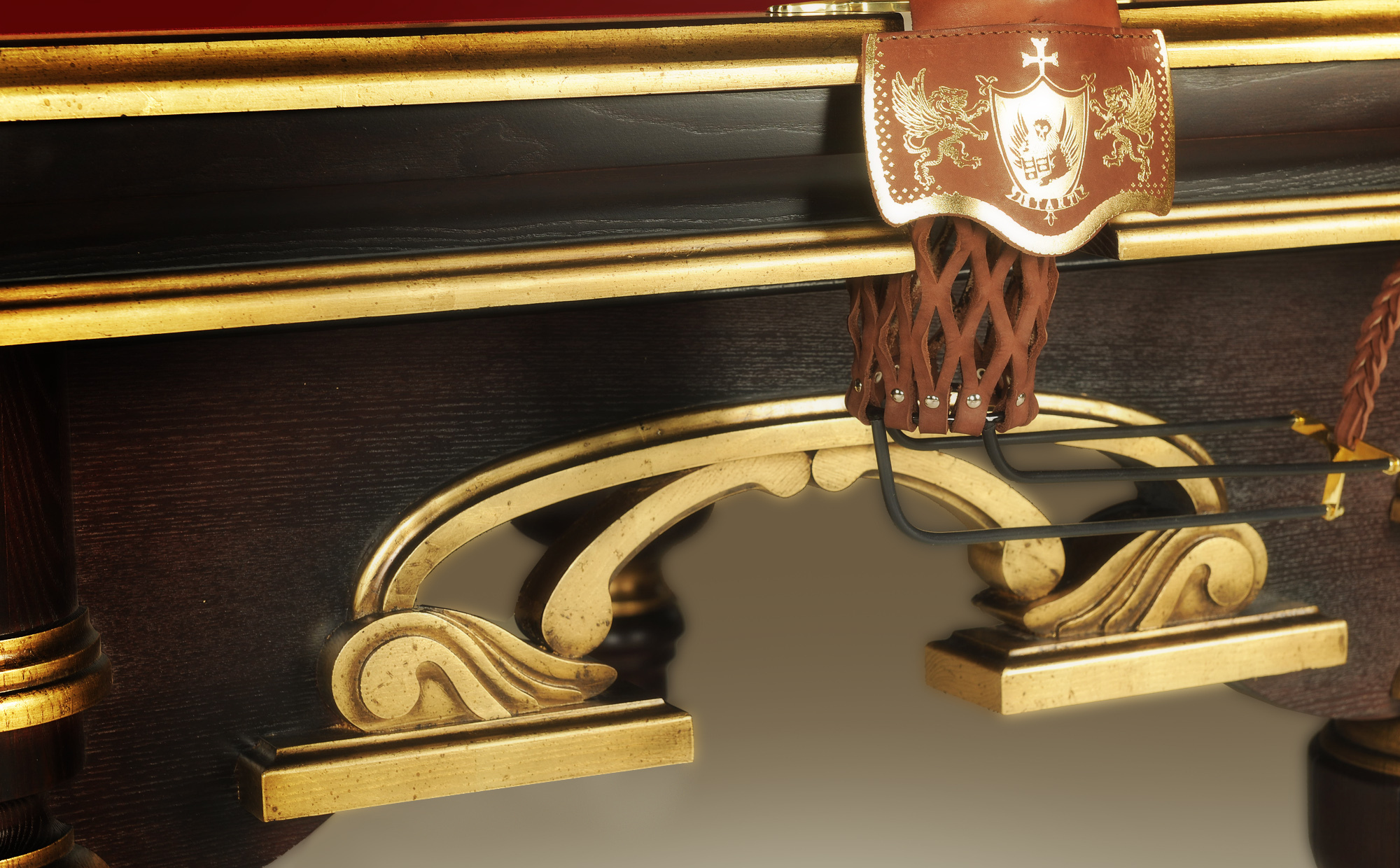 Представитель роскошной элегантности галереи эксклюзивных шедевров «Старт». Стилистика стола «Венеция-Люкс» отражает образ одноименного города, с его пышной архитектурой Эпохи Возрождения. Модель отличает особая роскошь отделки: золотая поталь украшает резной лафет ручной работы и элементы ног, тем самым делает силуэт бильярда выразительным и ярким.