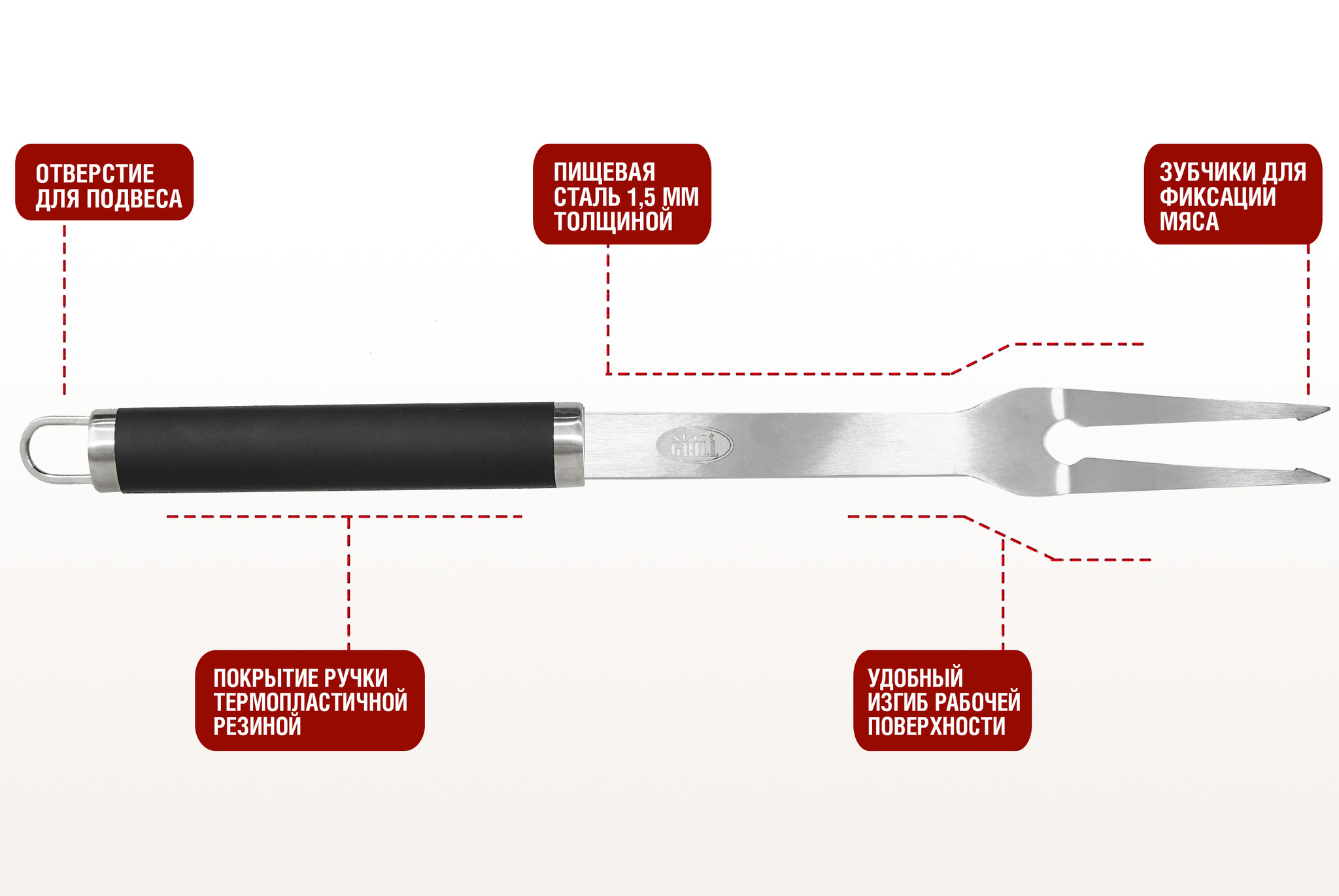 Вилка для гриля START GRILL отлично подойдет для ежедневного приготовления на гриле. Оптимальная длина ручки идеальна при использовании на угольных и газовых грилях разных размеров и форм. Удобная нескользащая ручка и качественное исполнение позволят без труда переворачивать и снимать с гриля большие куски мяса и другие продукты